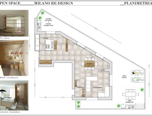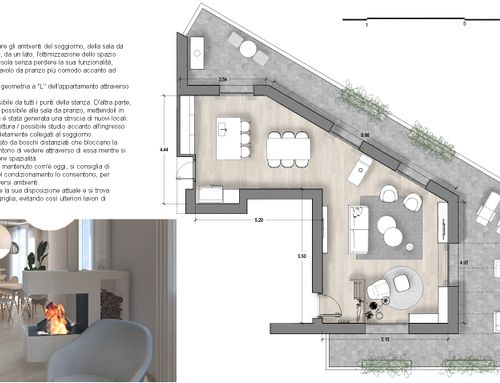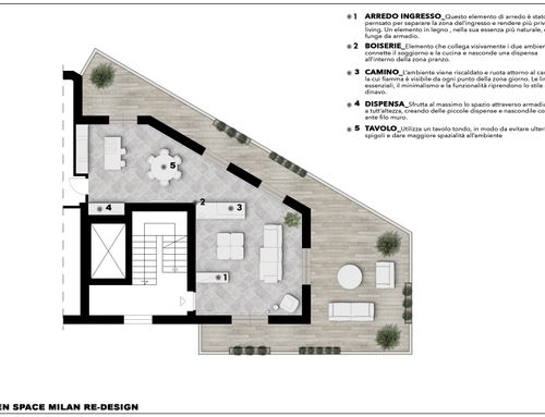 Buongiorno, vorremmo ridistribuire in modo funzionale e moderno l’open space della zona giorno. Nel dettaglio ci piacerebbe ricavare un ingresso più raccolto dove poter accogliere gli ospiti e dove tenere i cappotti/scarpe/monopattino (attualmente si entra subito nella stanza). Ci piacerebbe avere una cucina con isola, spaziosa, da godere e con eventuale area snack, la cosa per noi importante e anche la disposizione del tavolo in modo funzionale, vogliamo un solo tavolo di medie grandi dimensioni da poter usare sempre. Infine ci piacerebbe raccogliere il soggiorno e renderlo più’ intimo. Il tutto dovrebbe essere disposto in modo da utilizzare al meglio la terrazza dell’appartamento. Ci piace lo stile moderno/ essenziale, scandinavo, pulito con predominanza di bianco/grigio/legno/vetro. Sarebbe il top poter avere un camino se possibile bifacciale da poter ammirare sia dalla zona pranzo che dal divano.