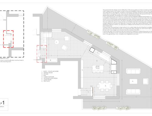 We would like to re arrange in a modern and more functional way the kitchen/living open space. In detail we would love to create an entry where to welcome our guests, leave the shoes, coat and overboard (now as soon as you open the door yout see the sofa. We would like to have a functional and spacious kitchen, if possible with an island, to enjoy with all the family. It has to be « hidden » (not the first thing you see when you get in) but not segregate (has to be part of the life) when someone is coocking it should be connected with the other people. On top of the island an area snack for a quick meal it would be nice. The other important part is the table, we would love to position the table (medium/large size) in a way that it is not too much against the wall, we want one table, a nice one, to use for all the occasions. Last but not least we would like to put the sofa in a more intimate and cosy way. All the space re distribution has to be aligned and functional to the terrace maximization living. The terrace it should be connected with the interior design. We love the modern and essential style, Scandic style is apprecciated, a clean design with the predominance of white/grey/wood and glass. The icing on the cake would be the fireplace, a two sided one to watch from the sofa and kitchen/table it would be TOP.