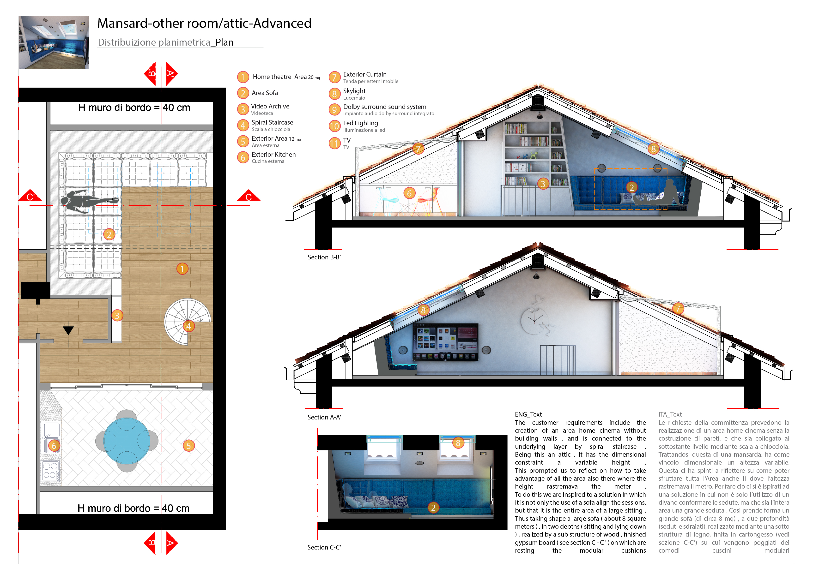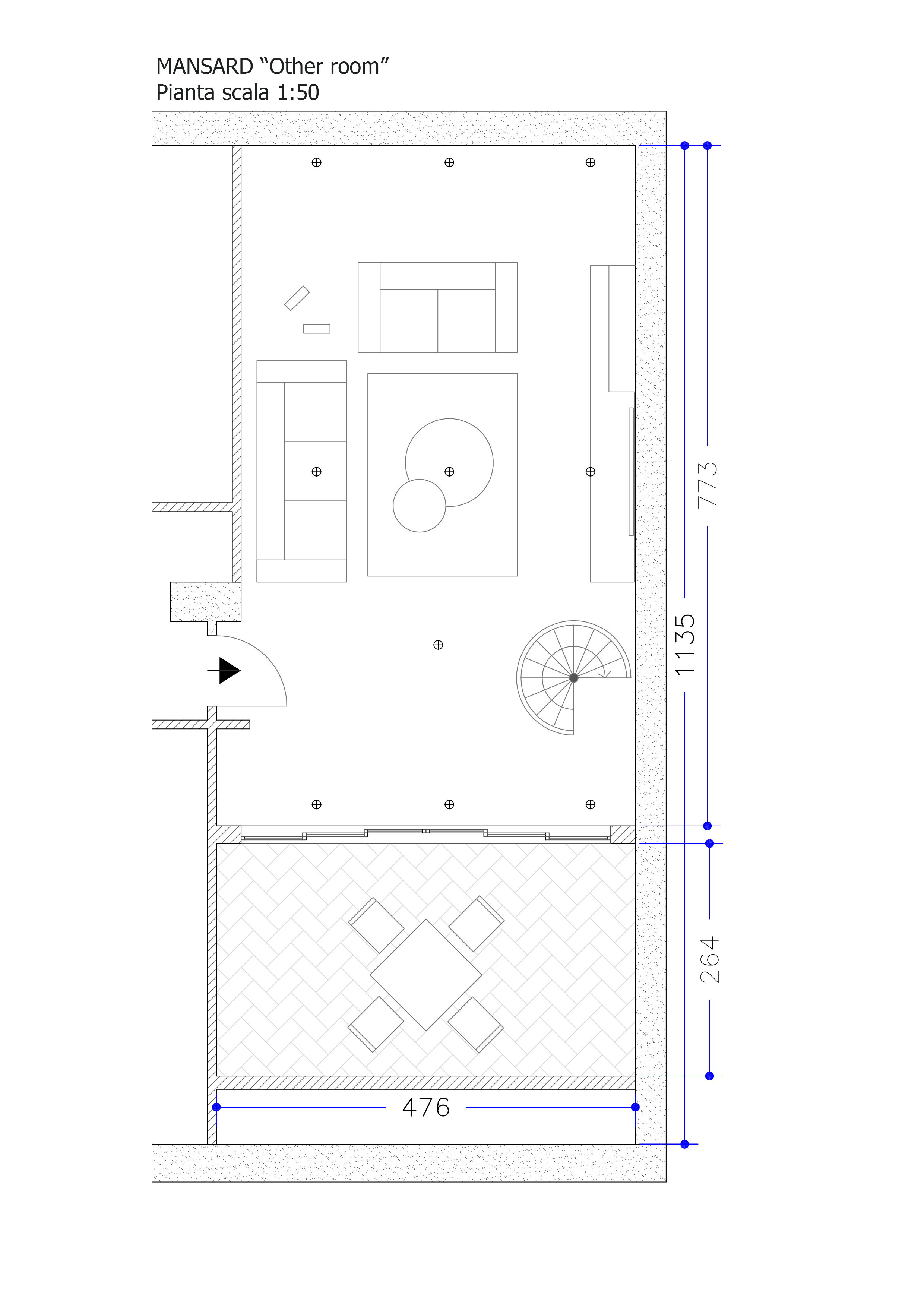 Vorremmo creare nella parte coperta una zona cinema, senza costruire pareti. Sulla parte sinistra del tetto gradiremmo avere delle finestre lucernaio.