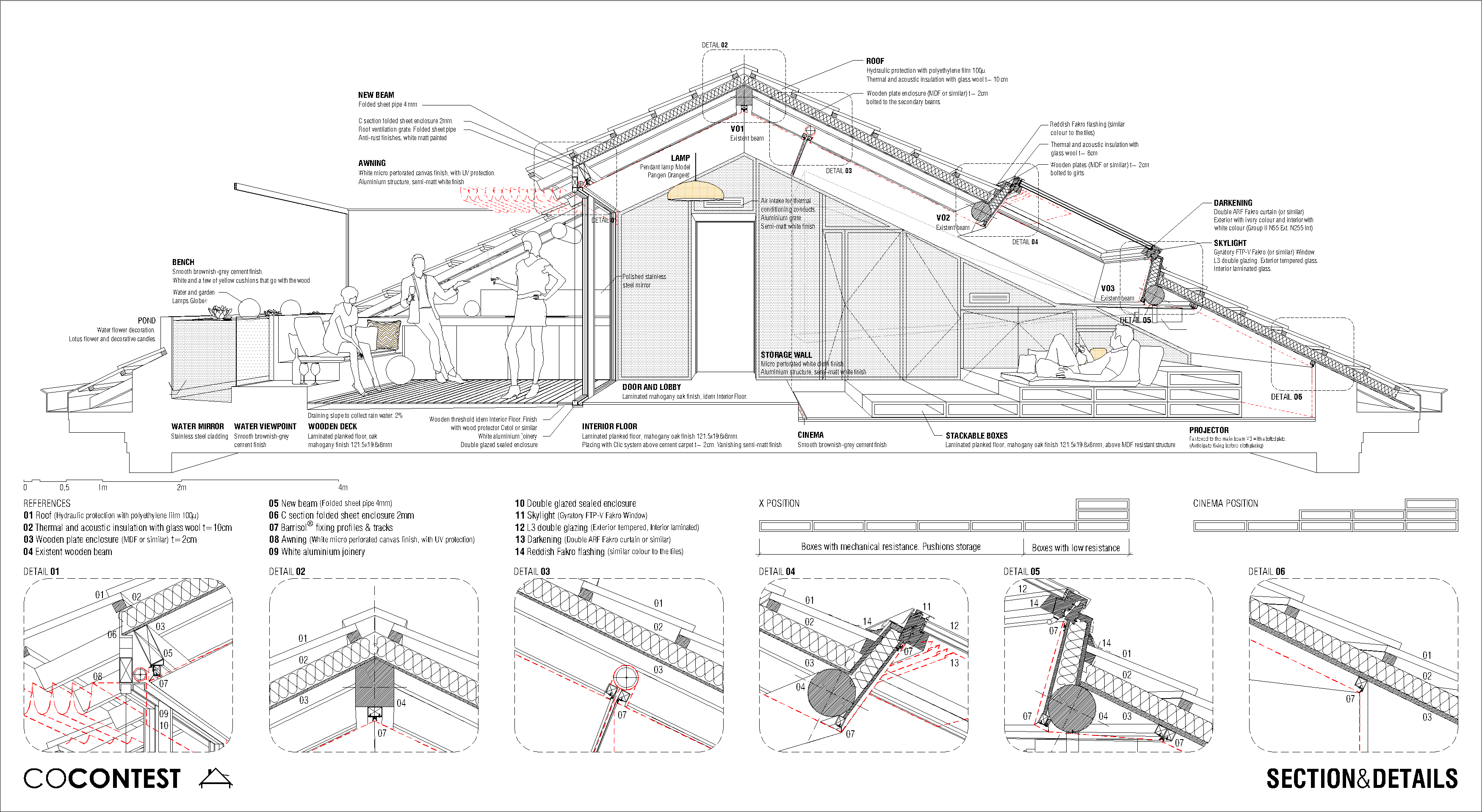 We would like to create in the covered area a cinema room, without walls. On the left side of the roof we would like to have some windows.
