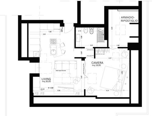 L'unico vincolo che abbiamo Ă© la posizione del bagno, il resto libero..