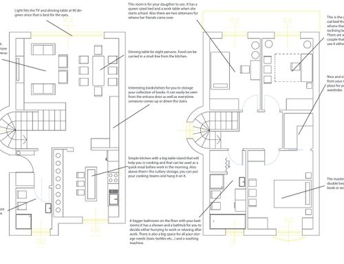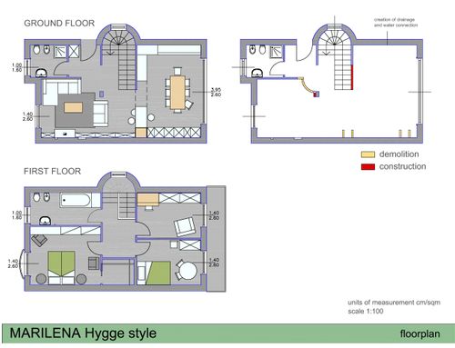 Downstairs there are 2 rooms: one is for a 4 years old child, if possible with a queen-size bed, the other should become a studio-area, relax room, with wardrobes and Murphy beds, for guests.