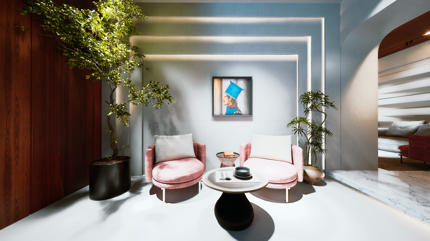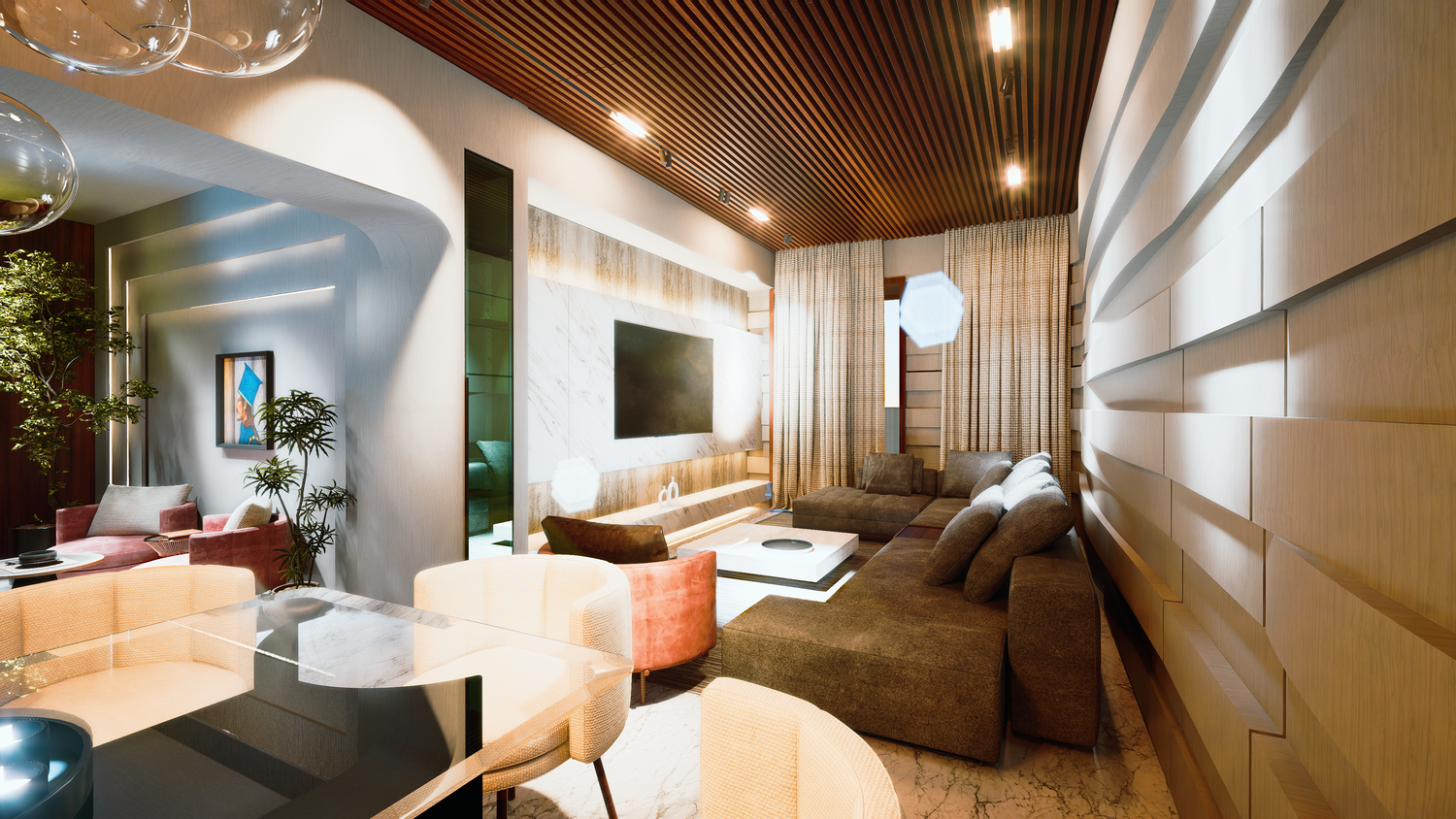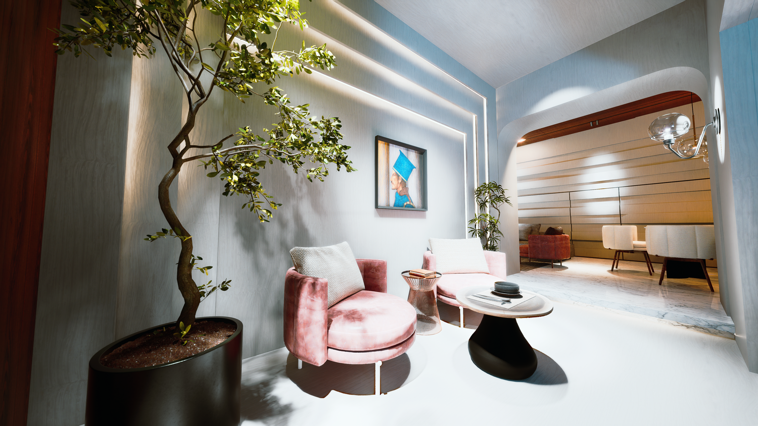 I Would like to expose my gratitude in design and drawings for contemporary concept designed for your comfort and long lasting joyful moments, While interior design for areas like Reception that has attracted specific levels on living and coziness that allow design to be extended for luxurious and classy Interior spaces.