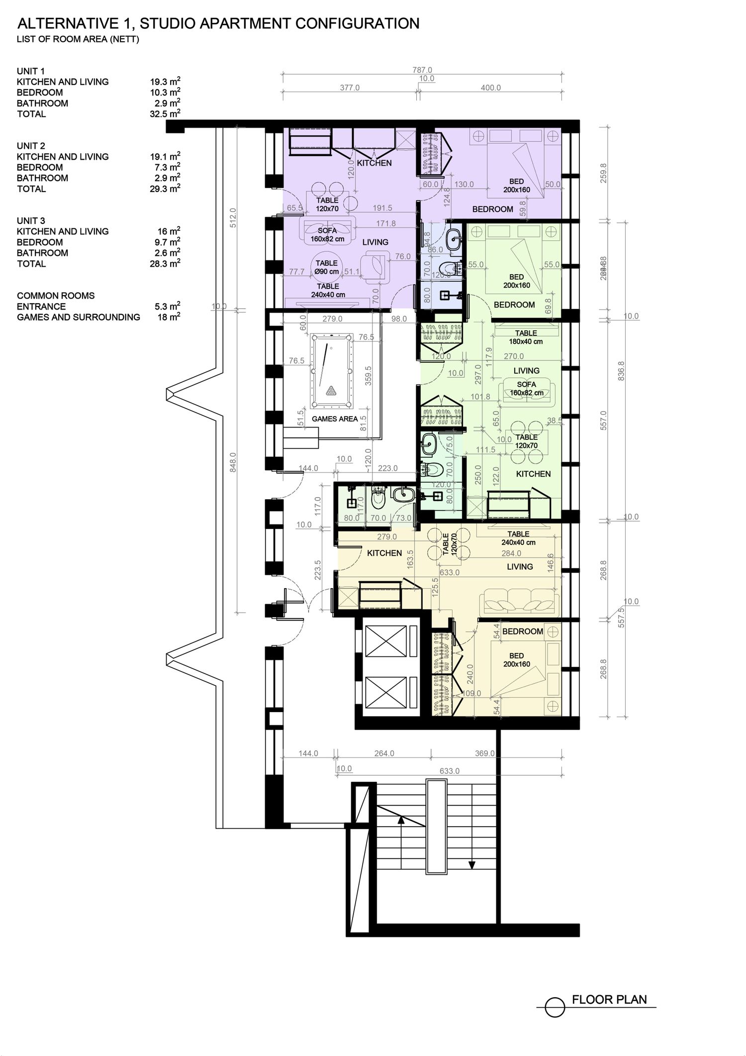 Dear client, I tried to maximize the space you have to fit as much studio apartment / guesthouse as possible while maintaining minimal area required by law. I proposed that the mezzanine became a social game room in studio apartment arrangement. I also listed all the area of each room and detailed measurements for you to check. It would be my pleasure to continue the work to even more detailed or even interior design should you need it. Looking forward to work with you.