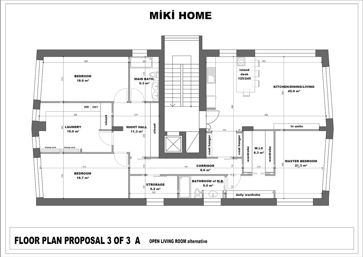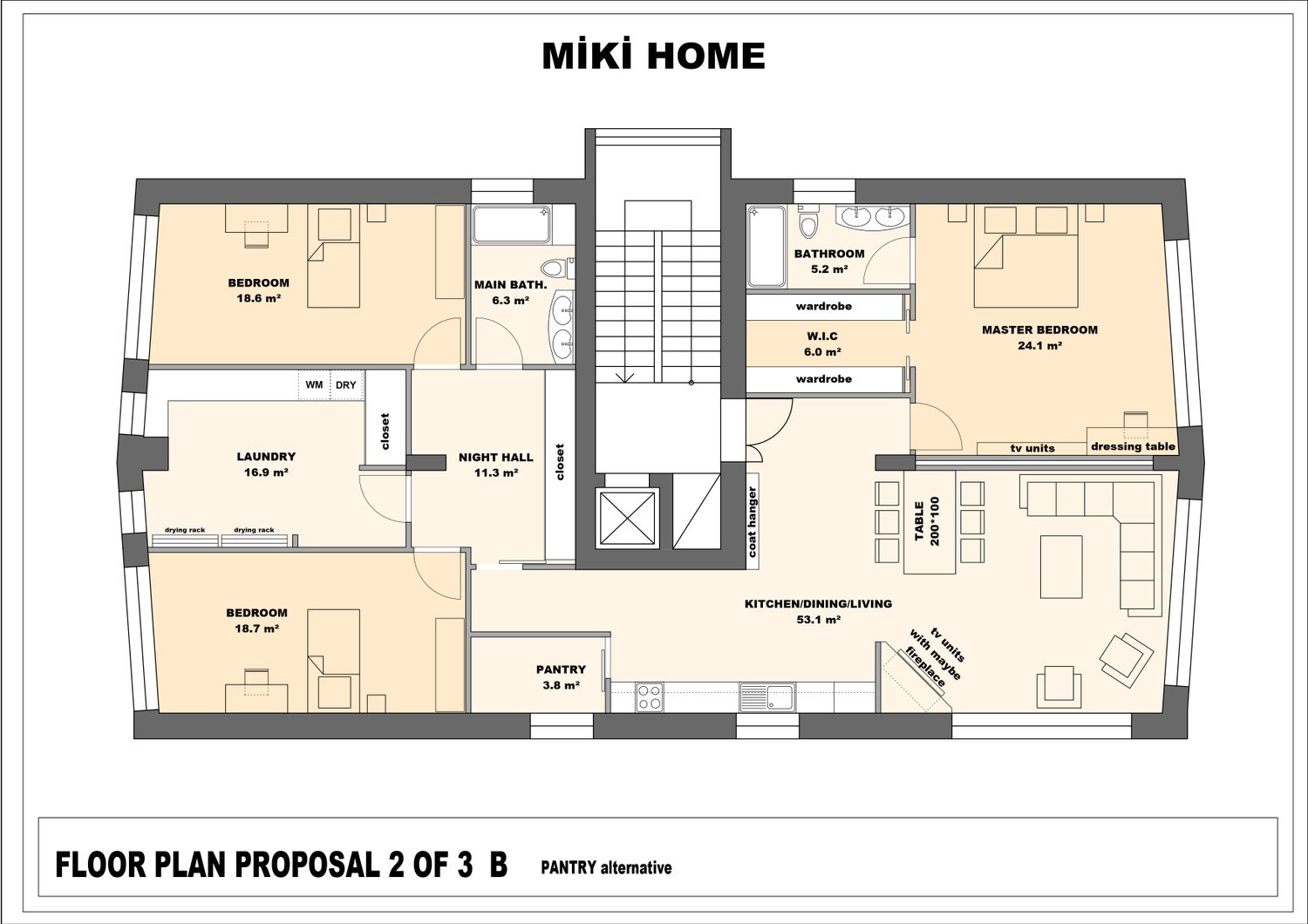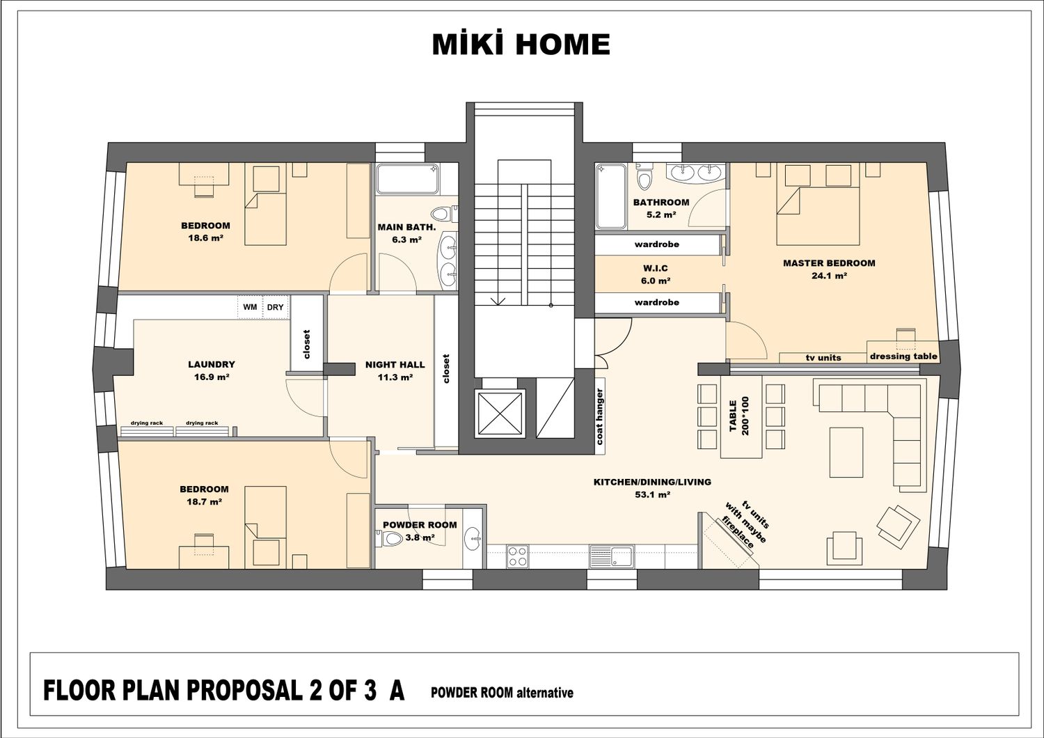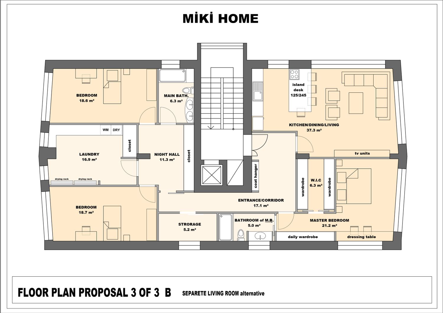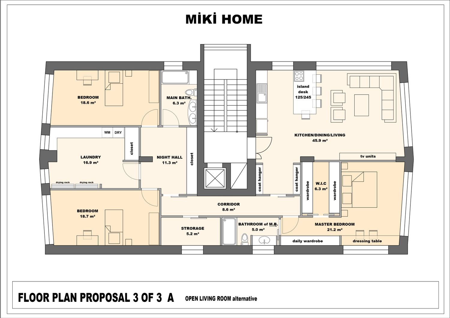 I've prepared three different floor plans for you. The second and third floor plans have been uploaded as two different plans with minor modifications. The differences are noted below the drawings. Thank you, I hope you like one of them.