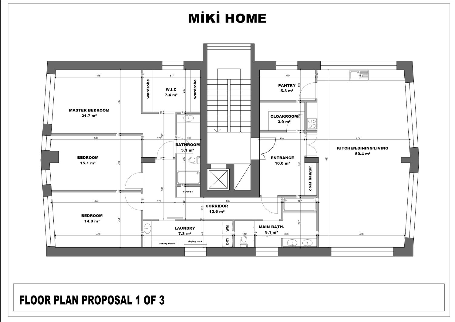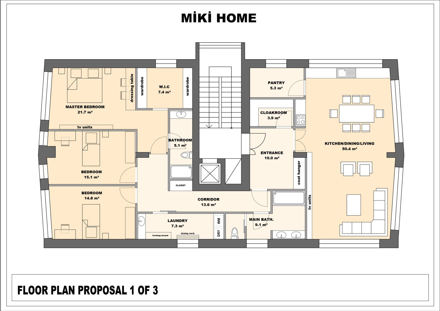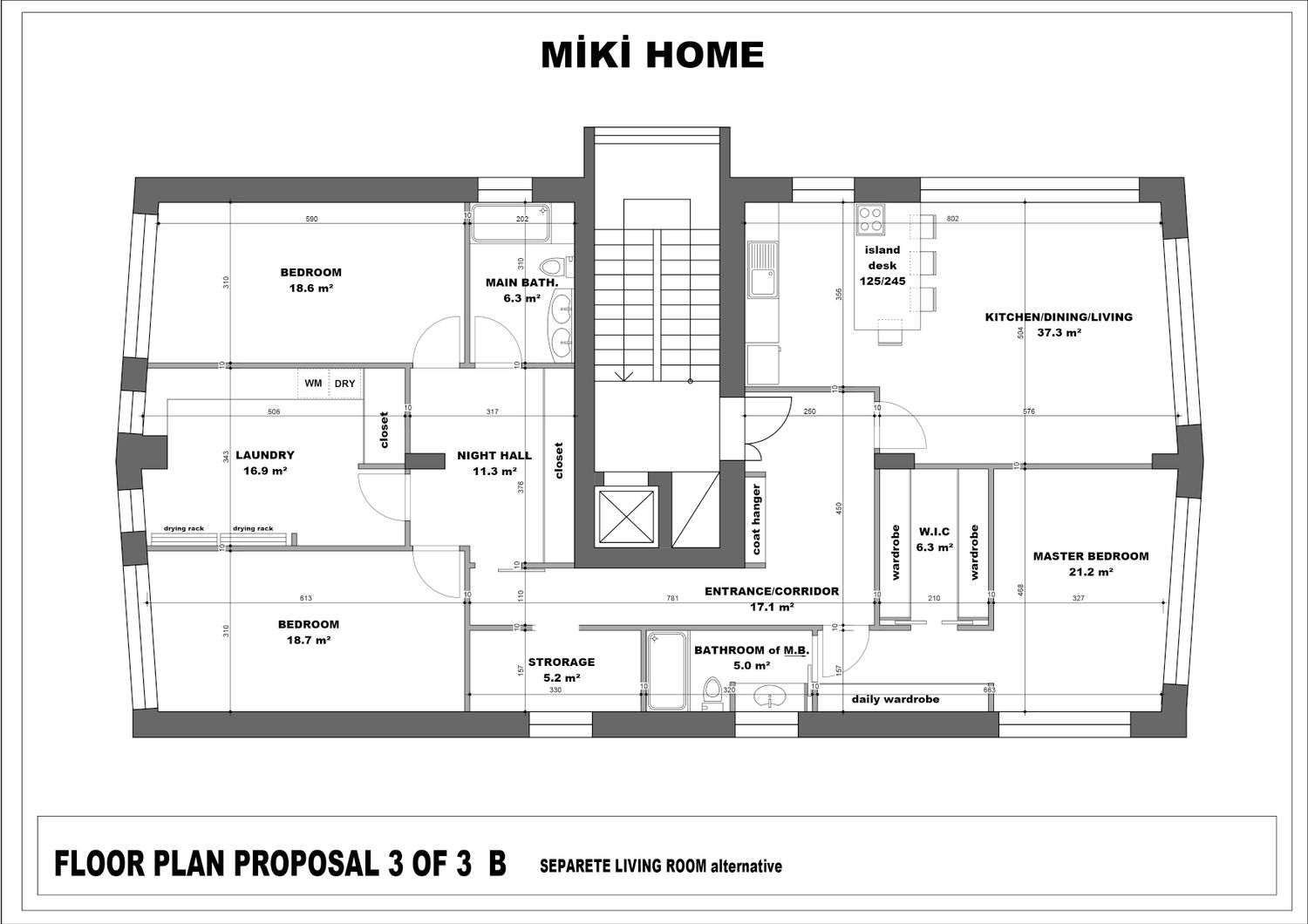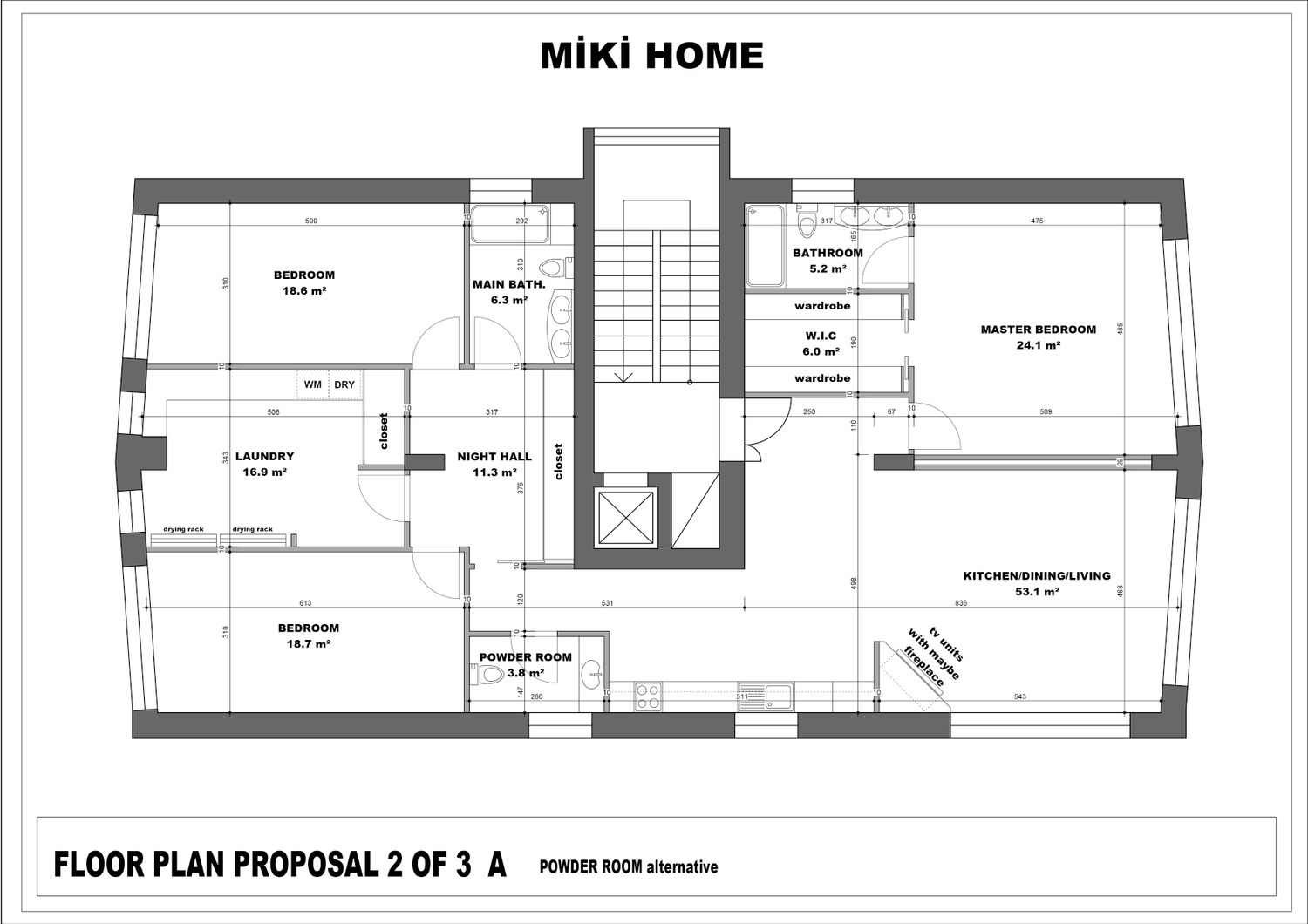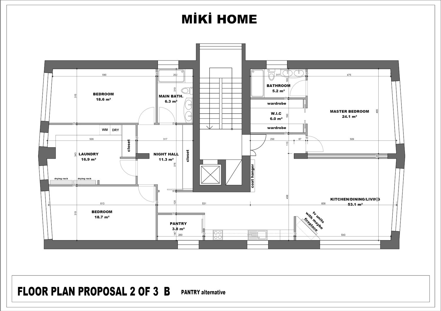 I've prepared three different floor plans for you. The second and third floor plans have been uploaded as two different plans with minor modifications. The differences are noted below the drawings. Thank you, I hope you like one of them.