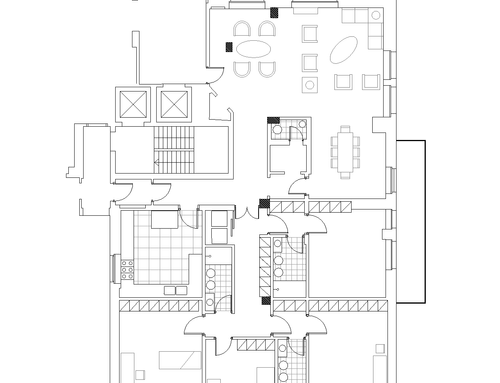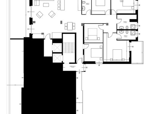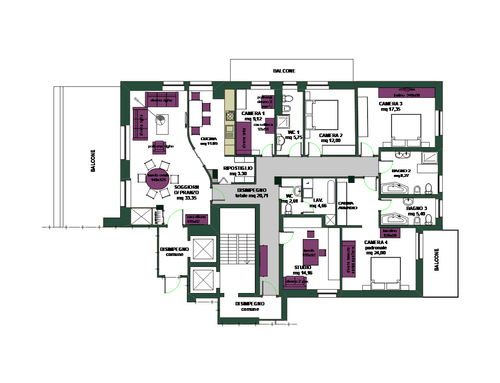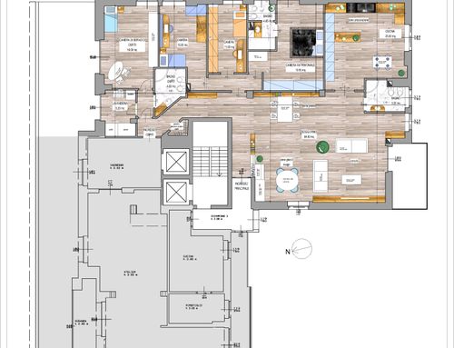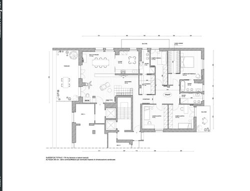 Ridistribuire gli spazi di una porzione di immobile derivante da un frazionamento di un ampio appartamento posto all'ultimo piano di una palazzina anni 60. L'immobile diventerà la residenza di una famiglia con figli e necessita di una totale ristrutturazione. Il desiderata sarebbe avere 3 camere da letto di cui una padronale con bagno en suite, ampio soggiorno con pranzo, cucina abitabile con tavolo da min 4 persone e zona servizio con bagno e lavanderia con possibilità di conversione/uso ospiti.