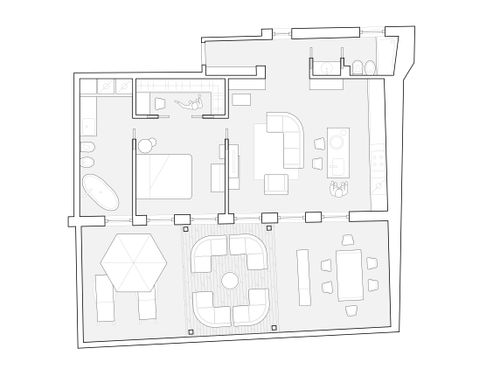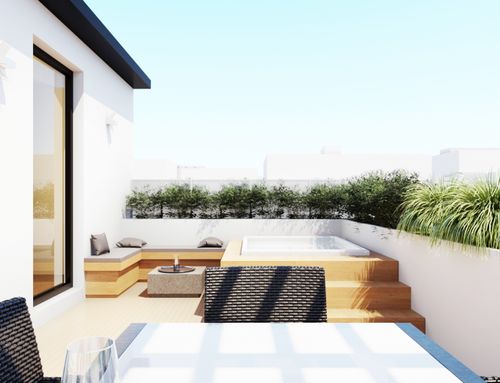 este es mi segundo hogar, para vacaciones pero no solo. Vivo solo con gatos. Quiero un espacio femenino y lujoso, que recuerde a una suite de hotel de lujo, donde pueda invitar a amigos a cenar y tal vez durante el fin de semana. por lo que debe haber un espacio para invitados, o un segundo dormitorio o sala de estar que se pueda transformar en un segundo dormitorio. Debe haber dos baños, uno principal con una gran bañera / ducha y un pequeño baño de visitas con lo esencial. la cocina debe estar bien equipada, me gusta cocinar, pero debe estar estructurada de manera que cualquier desorden en la cocina no esté realmente a la vista. el área exterior debe incluir un área para tomar el sol, un área de conversación y un comedor con la posibilidad de tal vez tener una barbacoa y debe diseñarse como una extensión natural del interior. Tengo mucha ropa, zapatos, bolsos, por lo que el área del guardarropa debe ser grande y también debe haber un espacio para lavar ropa. el estilo no tiene por qué ser necesariamente marino. Me encantan los espacios abiertos, con divisiones retráctiles ya que al estar casi siempre sola la casa es para mi uso exclusivo, pero tengo que poder compartirla si es necesario. es posible crear un invernadero solar en la terraza.