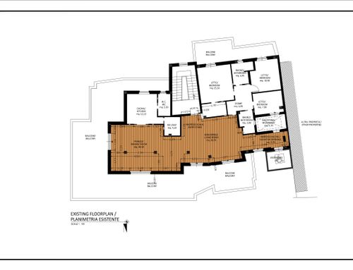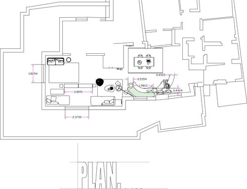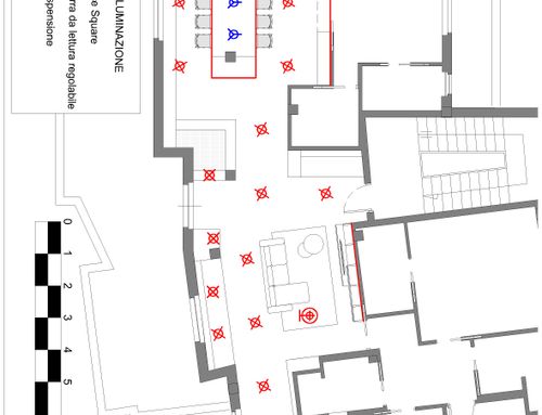 The living area, very large and bright, can be accessed directly from the lift or from the stairs. I have set up various light points and connections for the TV. Basically I would need a table (perhaps that can be opened) for lunch, 8/10 people, and seating spaces (sofas and armchairs), more storage furniture (sideboards and/or other) . Two French windows in the living area lead to a large terrace that surrounds the attic for 180 degrees.