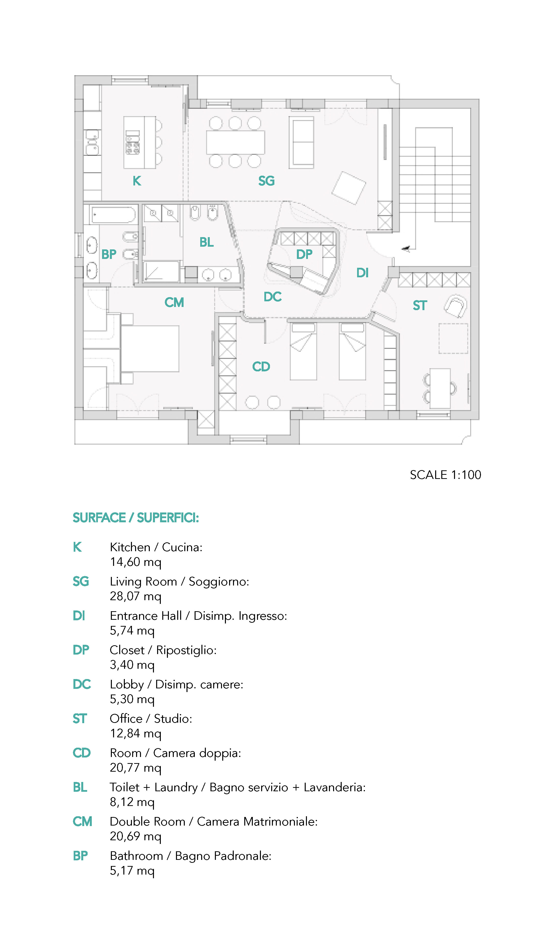 Vorremmo che l’appartamento venga suddiviso in zona giorno e zona notte.