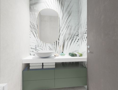 7. As for the bathroom, I would like to change the coating with a resin and a wallpaper;