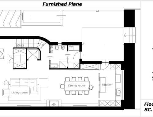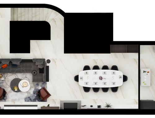 Furnishing the living area of a villa, the rooms are already divided, therefore, we are looking for ideas on how to furnish them together with ideas on finishing. The style must be modern and warm, materials such as wood, glass and new metal finishes that are particularly current must be the protagonists of the space. Everything must be very linear and clean. For the floor, preference is given to stoneware, to exclude the parquet.