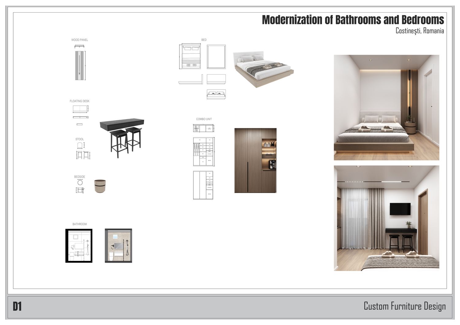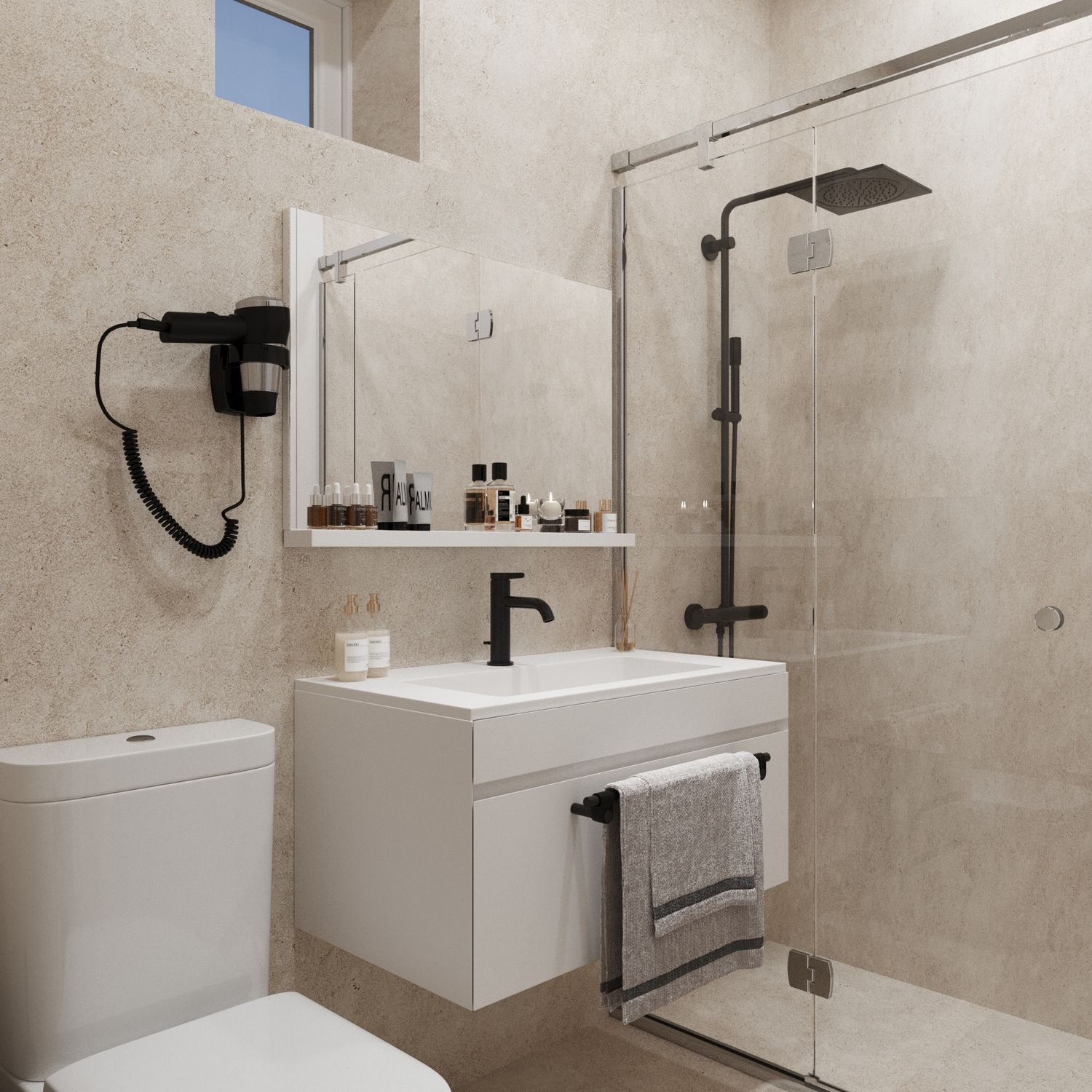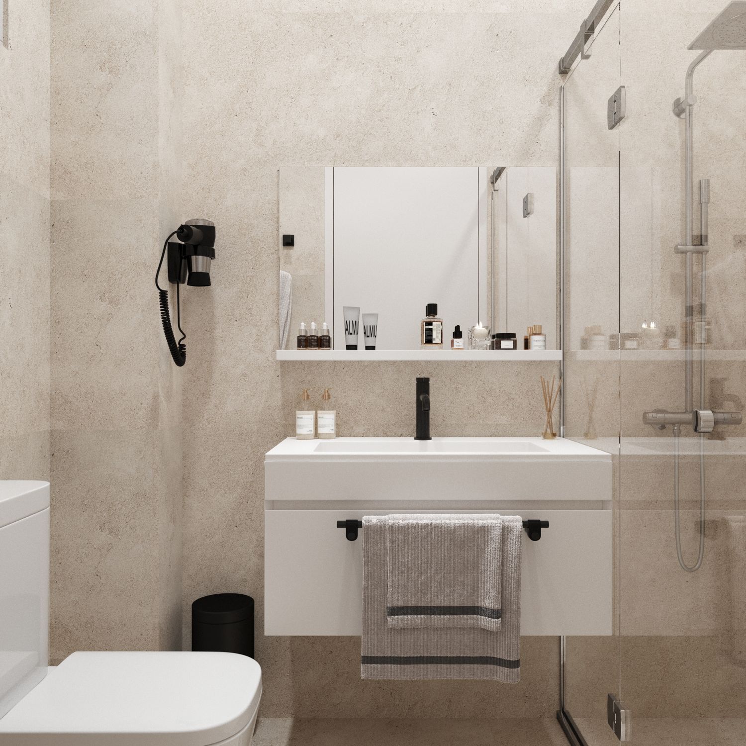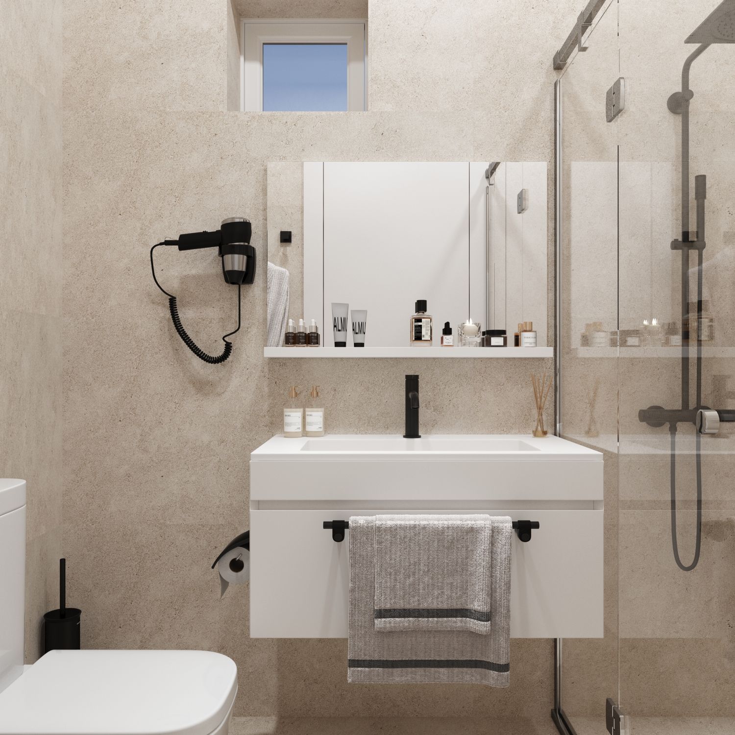 As part of this project, three different design alternatives have been prepared in order to facilitate the decision-making process and allow for a clear comparison of options. For each alternative, technical drawings and 3D renderings have been produced. In addition, seven different ceramic options and three different bathroom furniture options were tested for the bathrooms, and renderings were prepared for each of these alternatives.