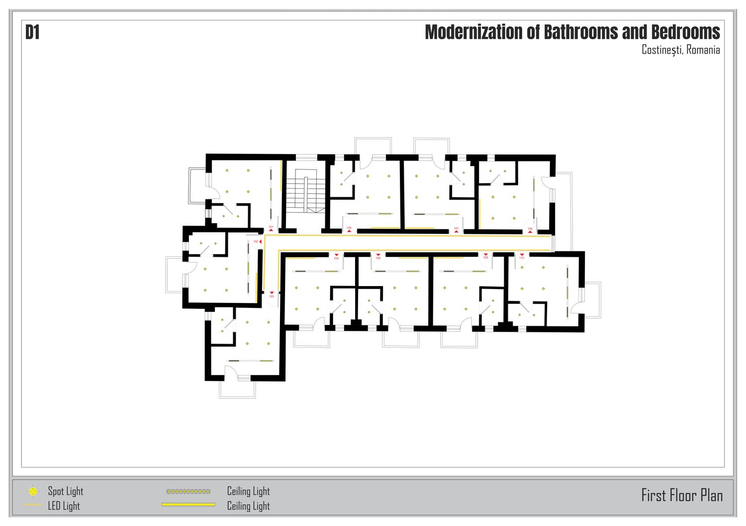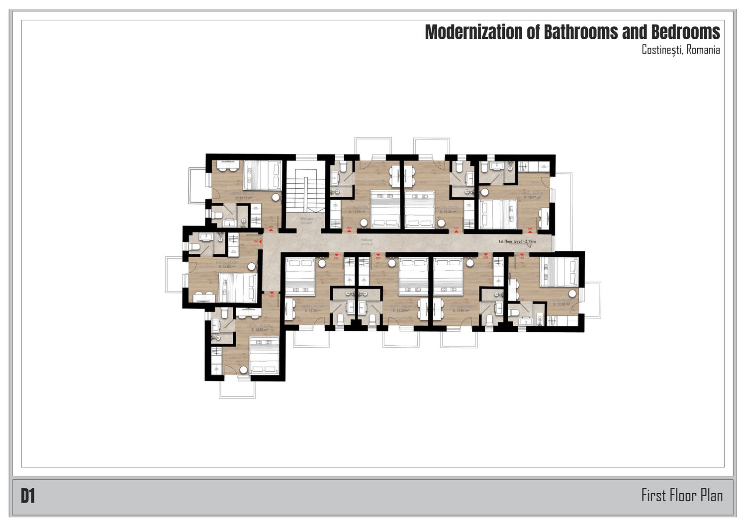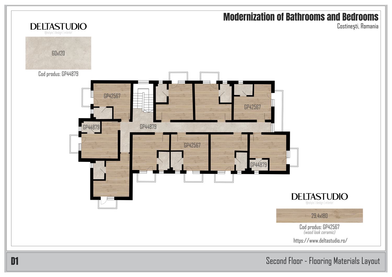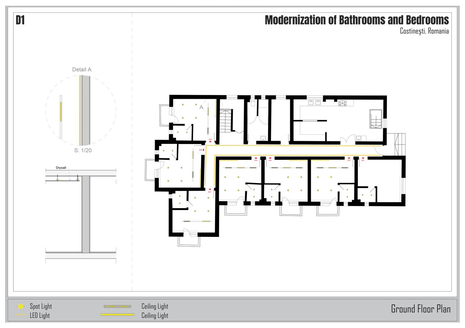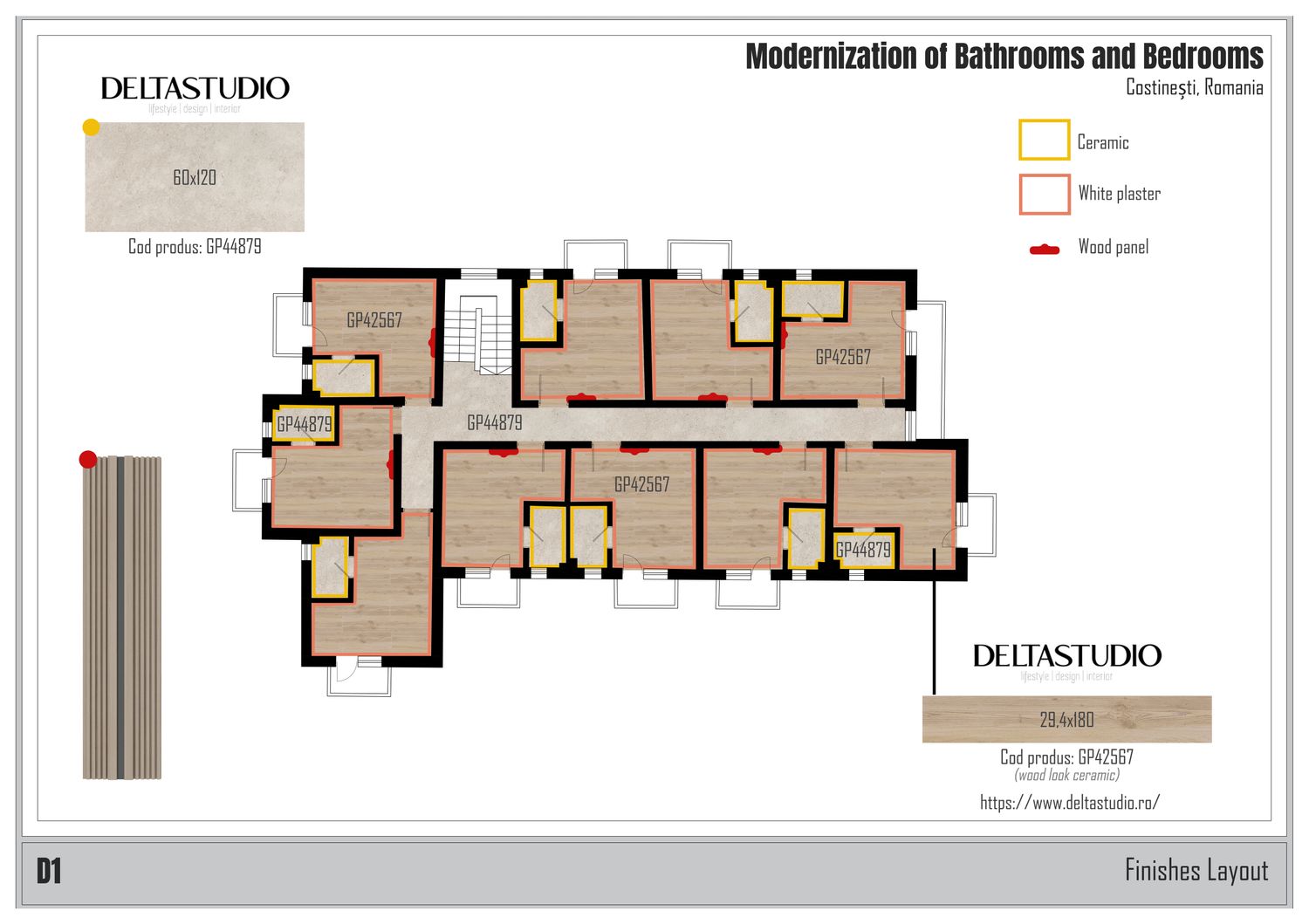 As part of this project, three different design alternatives have been prepared in order to facilitate the decision-making process and allow for a clear comparison of options. For each alternative, technical drawings and 3D renderings have been produced. In addition, seven different ceramic options and three different bathroom furniture options were tested for the bathrooms, and renderings were prepared for each of these alternatives.