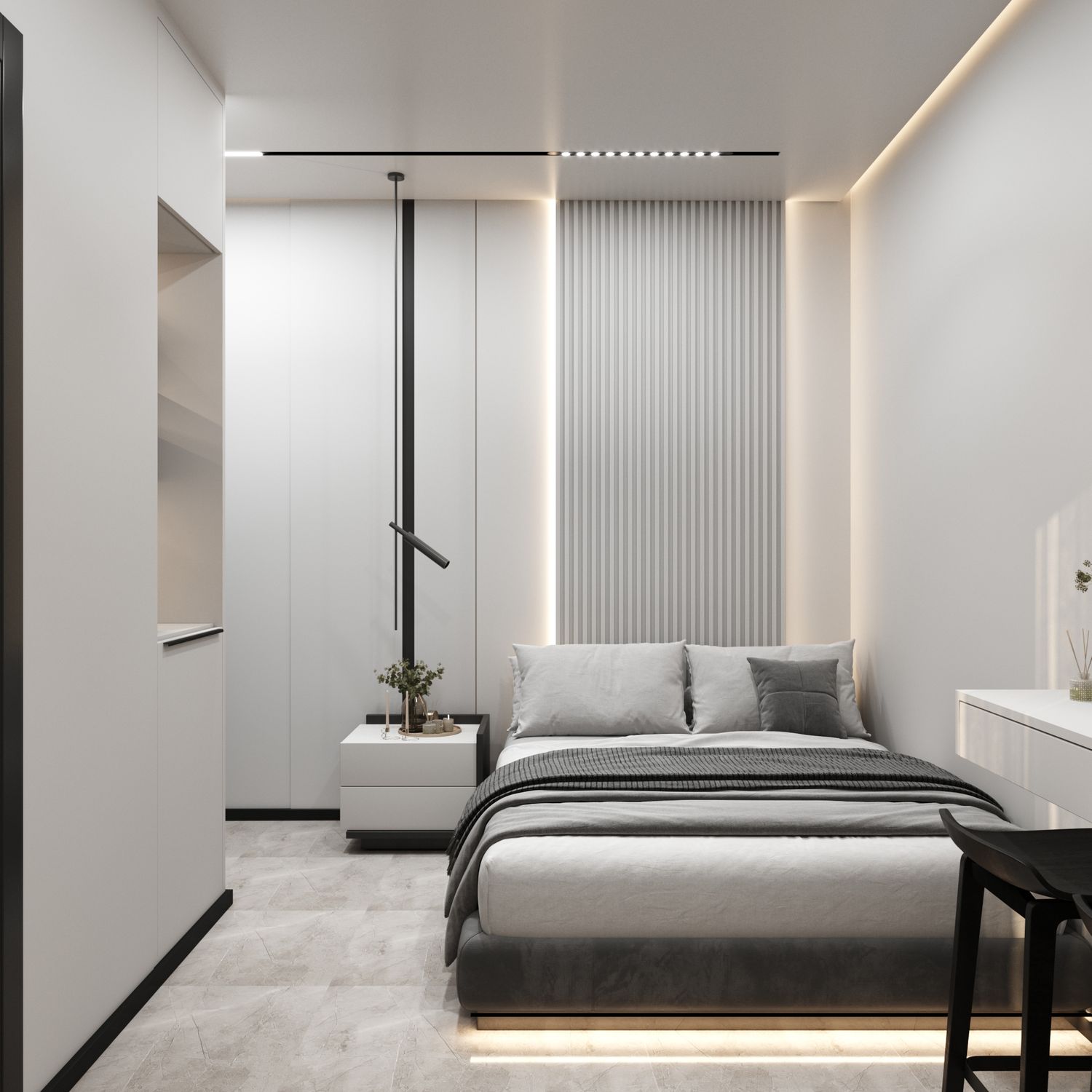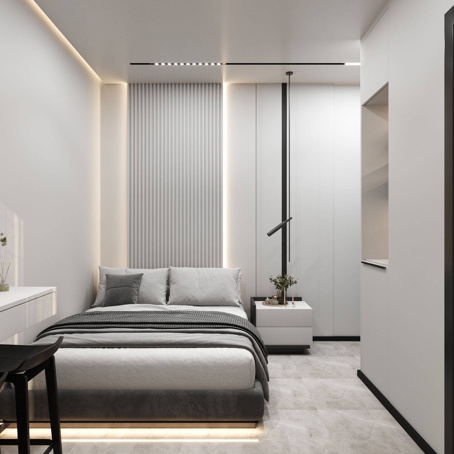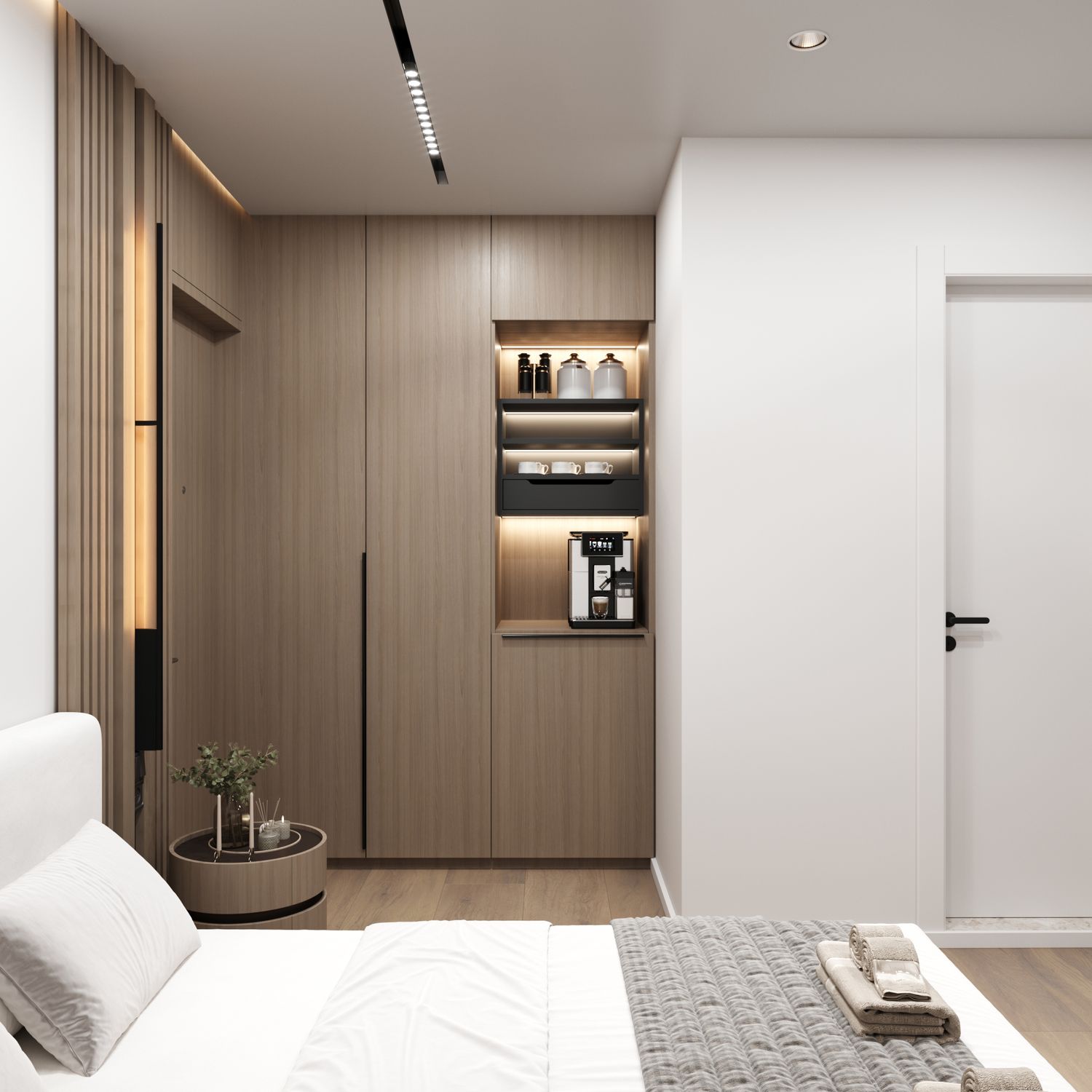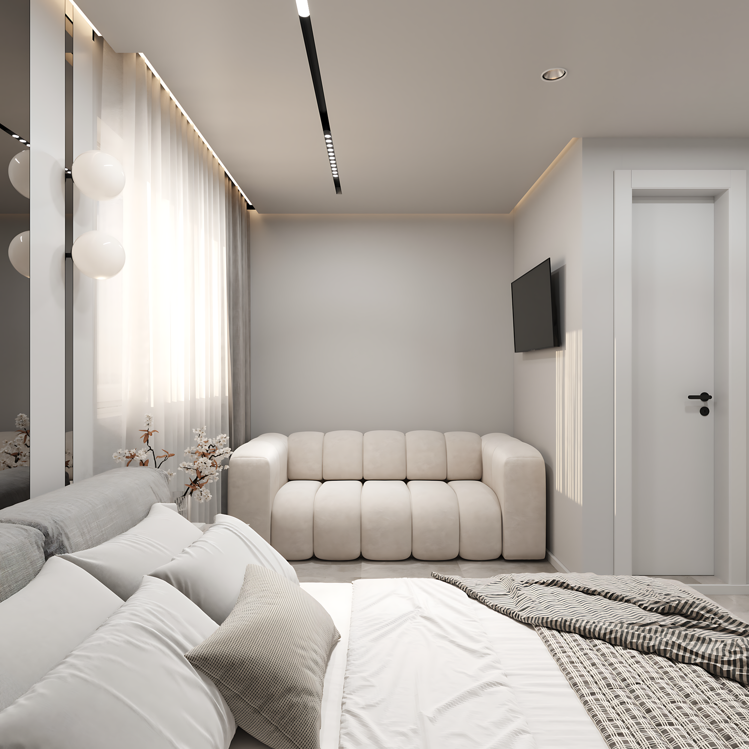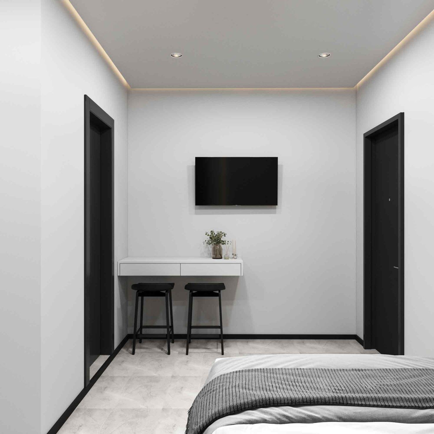 For the guest rooms, a separate cabinet unit has been designed to conceal the mini fridge and the safe. In addition, the bedside tables were treated as separate furniture pieces, and their designs were developed by selecting ready-to-purchase products. Likewise, for the furniture elements planned for custom fabrication, the design work has been completed and fully coordinated so that they can be applied according to the selected design alternative.