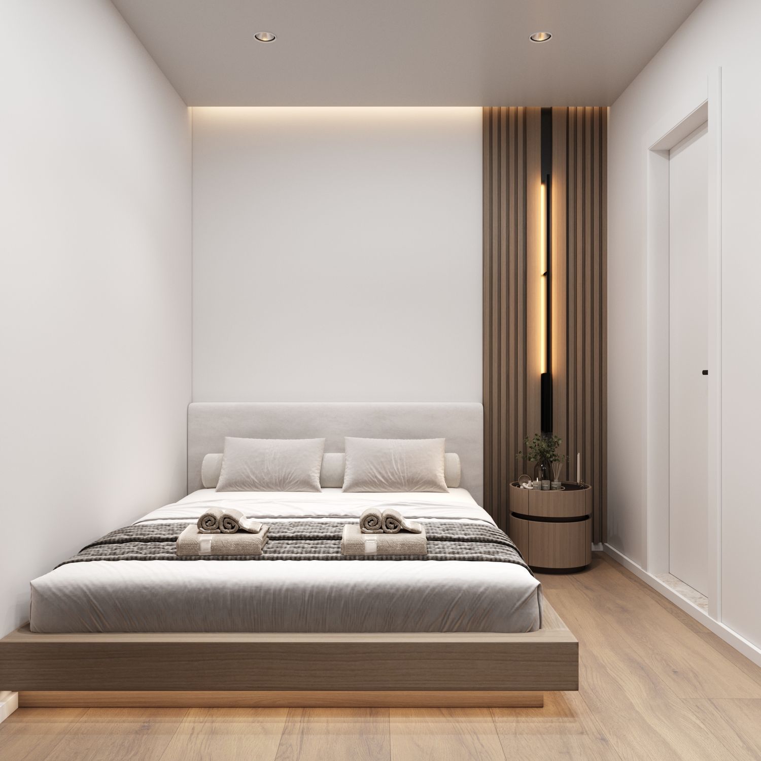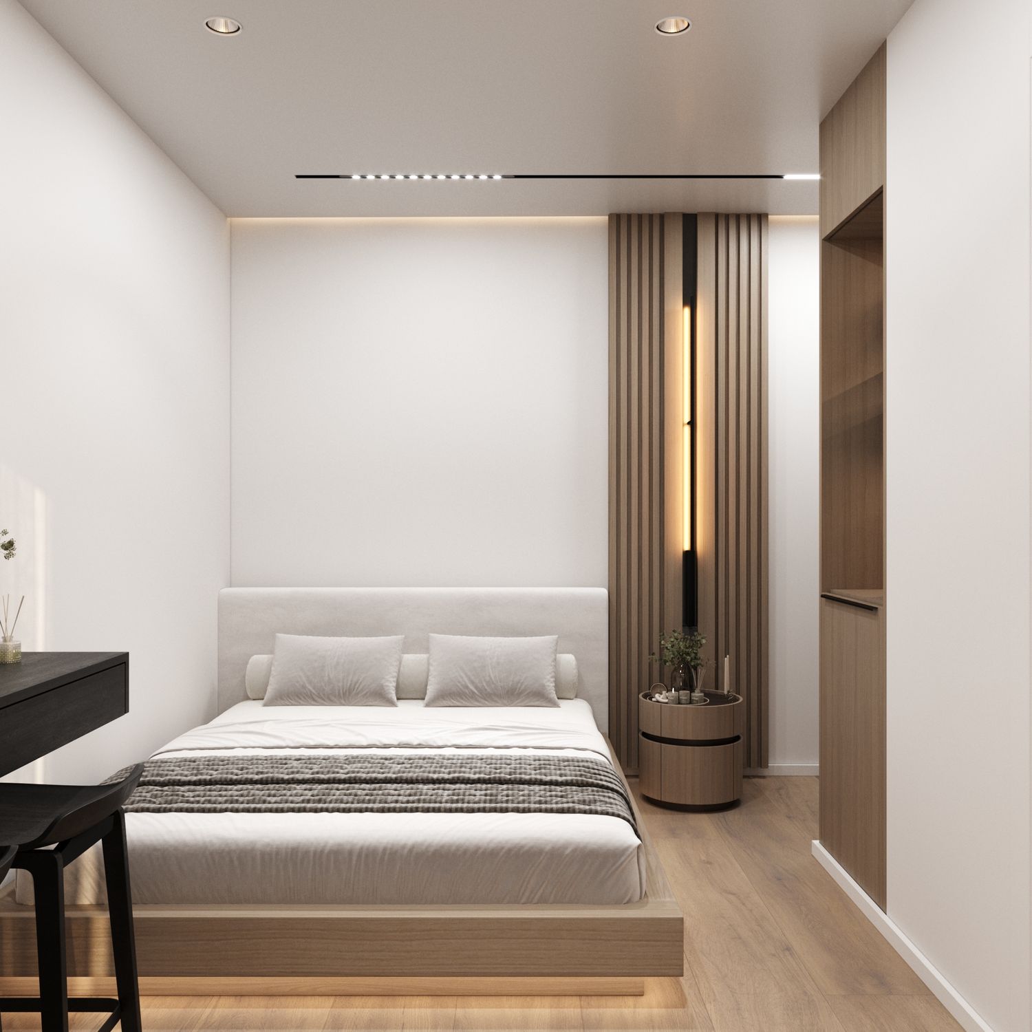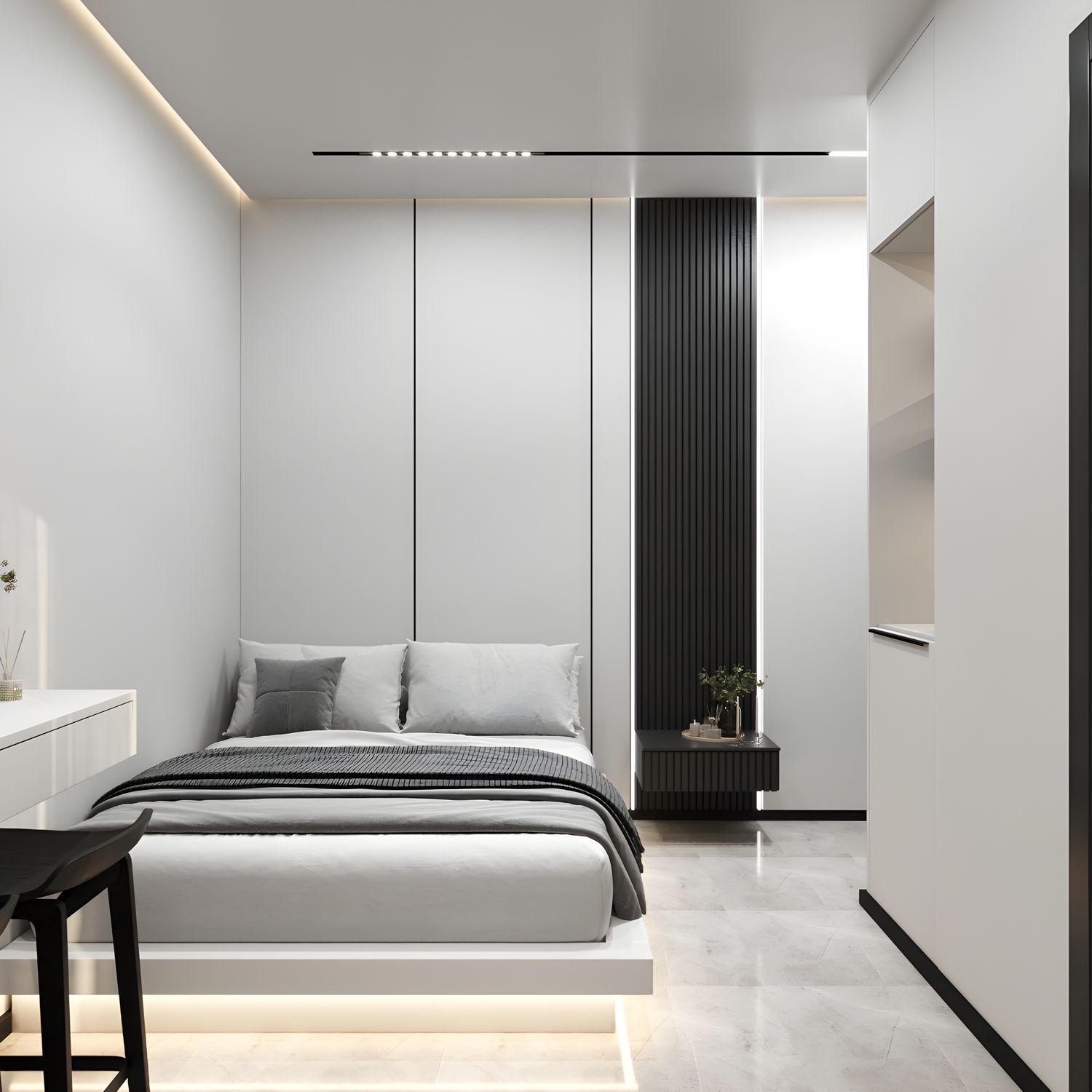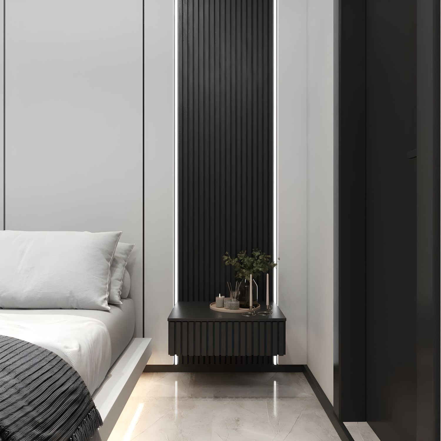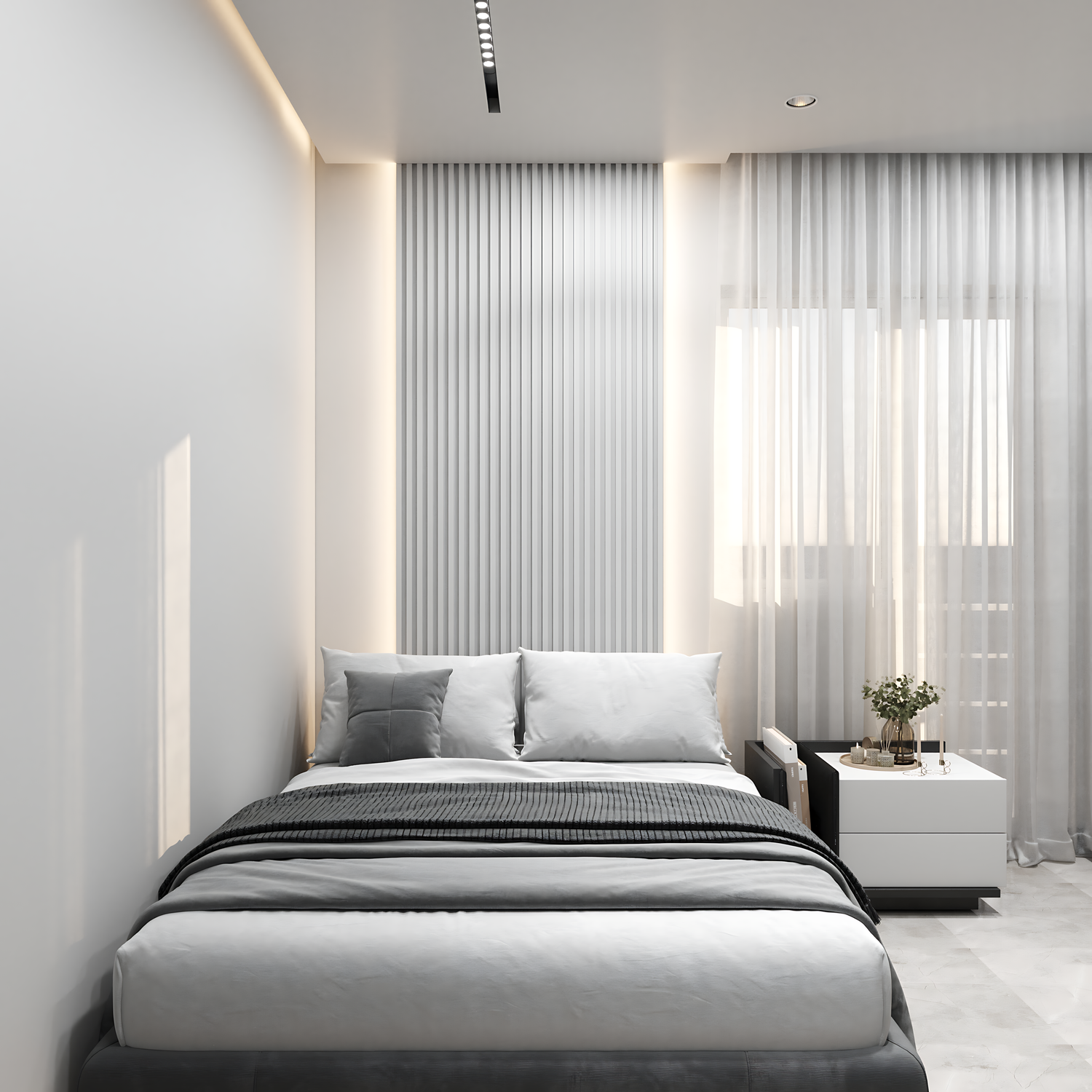 For the guest rooms, a separate cabinet unit has been designed to conceal the mini fridge and the safe. In addition, the bedside tables were treated as separate furniture pieces, and their designs were developed by selecting ready-to-purchase products. Likewise, for the furniture elements planned for custom fabrication, the design work has been completed and fully coordinated so that they can be applied according to the selected design alternative.
