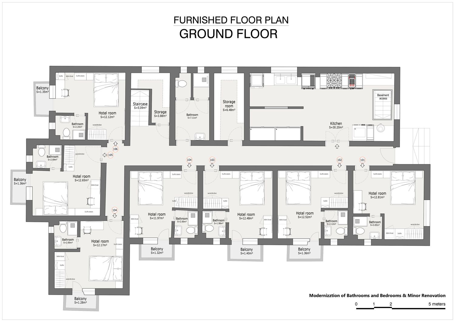 This project transforms a simple Guesthouse into an iconic destination for the young target and Costinești festival-goers. The goal is not just to offer a bed, but a visual ("Instagrammable") experience that starts from the lobby and evolves as you ascend the building.