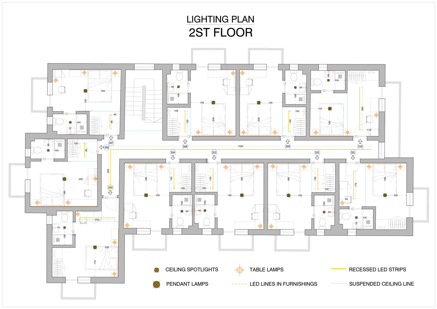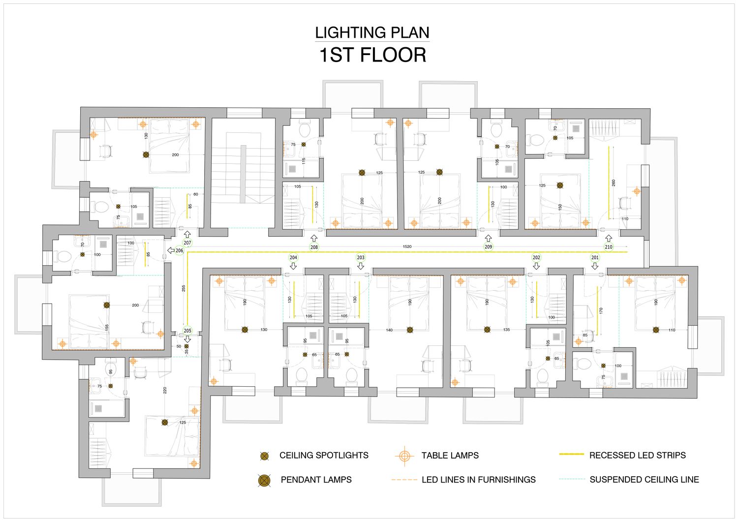 - The "Wall-to-Wall" Headboard: A paneling system that unifies nightstands and luggage racks, integrating indirect LED lighting which, together with the corridor lights, defines the mood without glare.