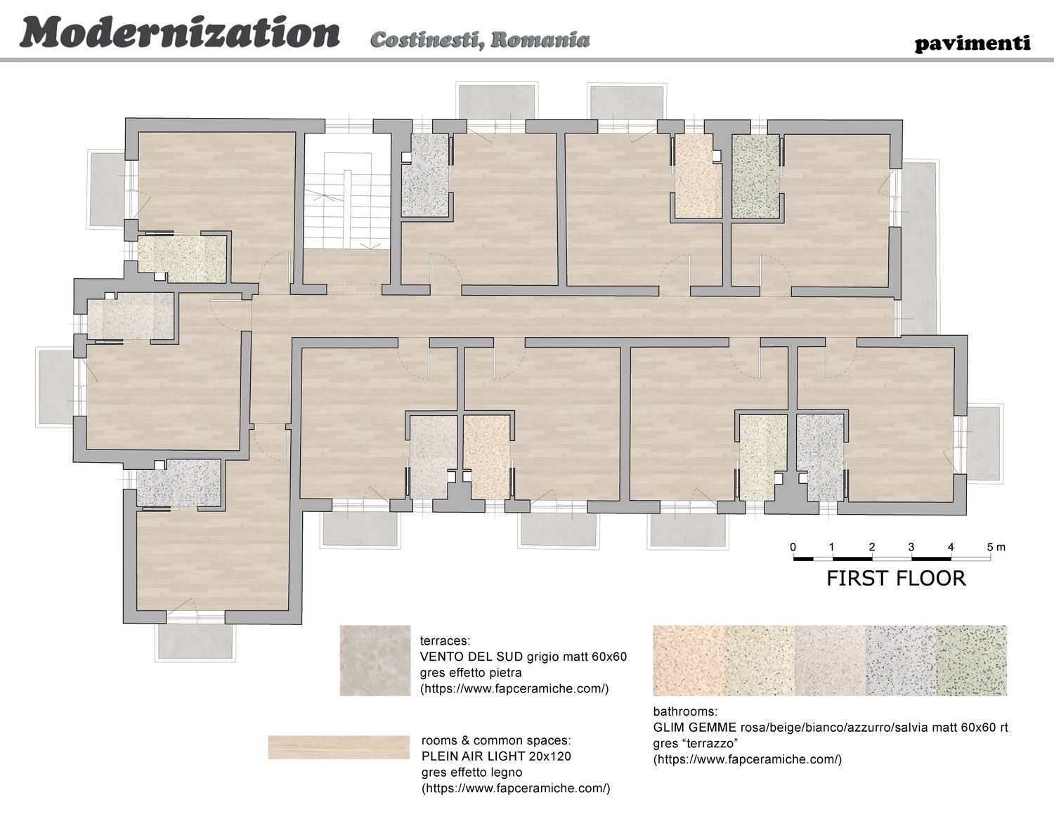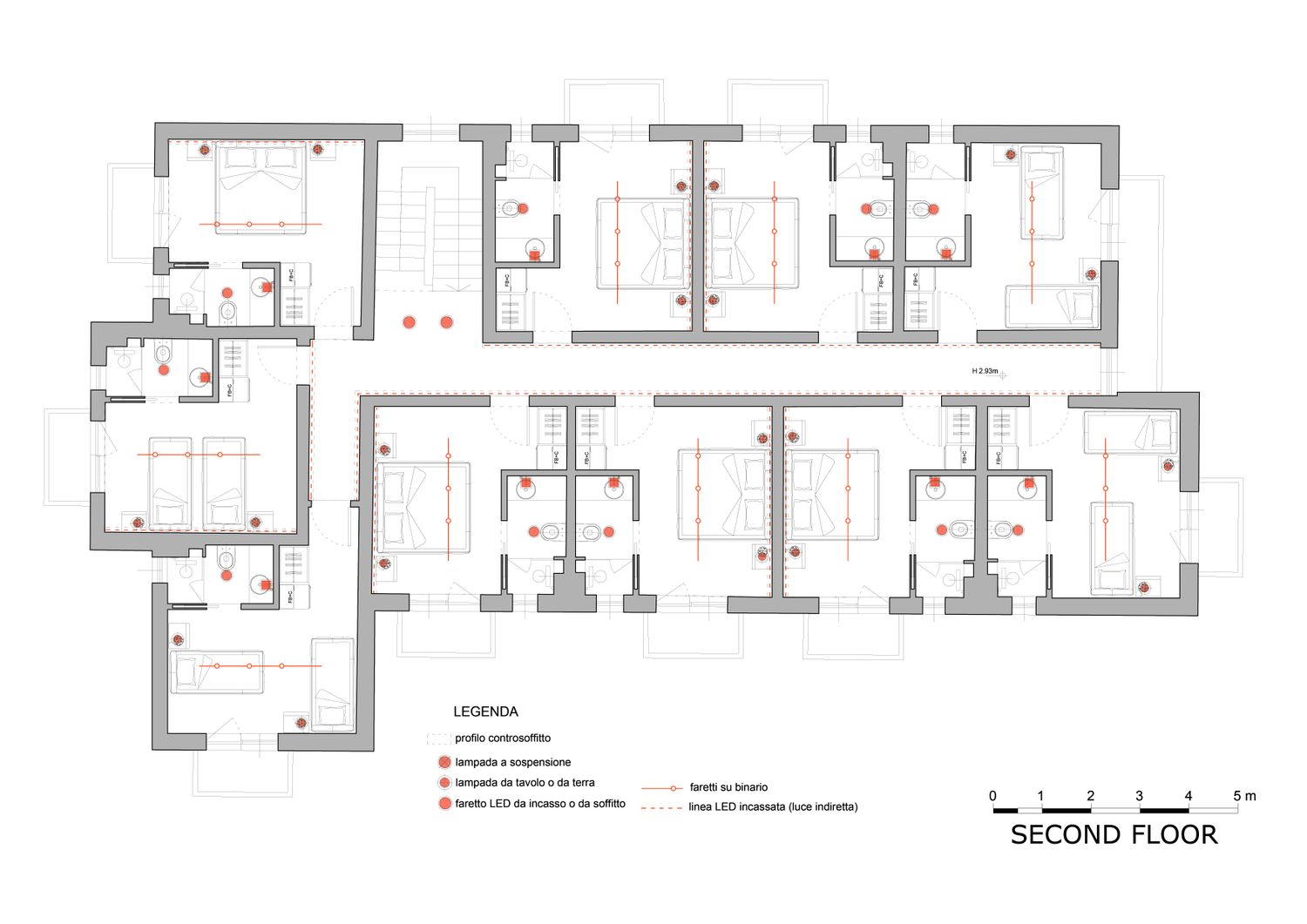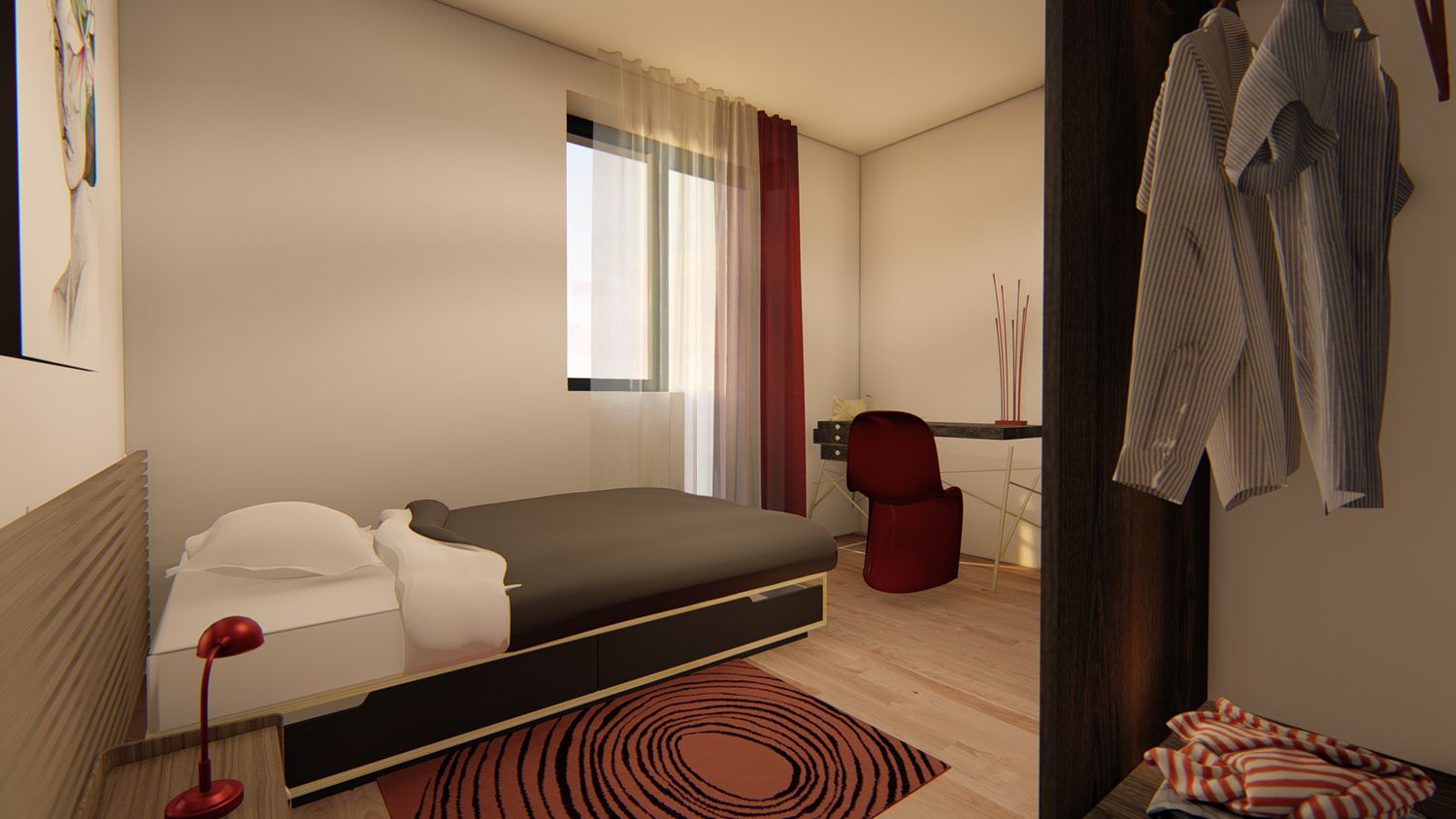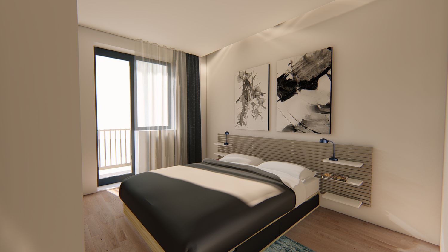 Our project proposes a renovation of the rooms, including bathroom modifications, designed to feature a comfortable shower, toilet, and sink with a large countertop. Each room will have the option of a different configuration depending on your needs: double with a double bed, double with two single beds, or single with a queen-size bed.