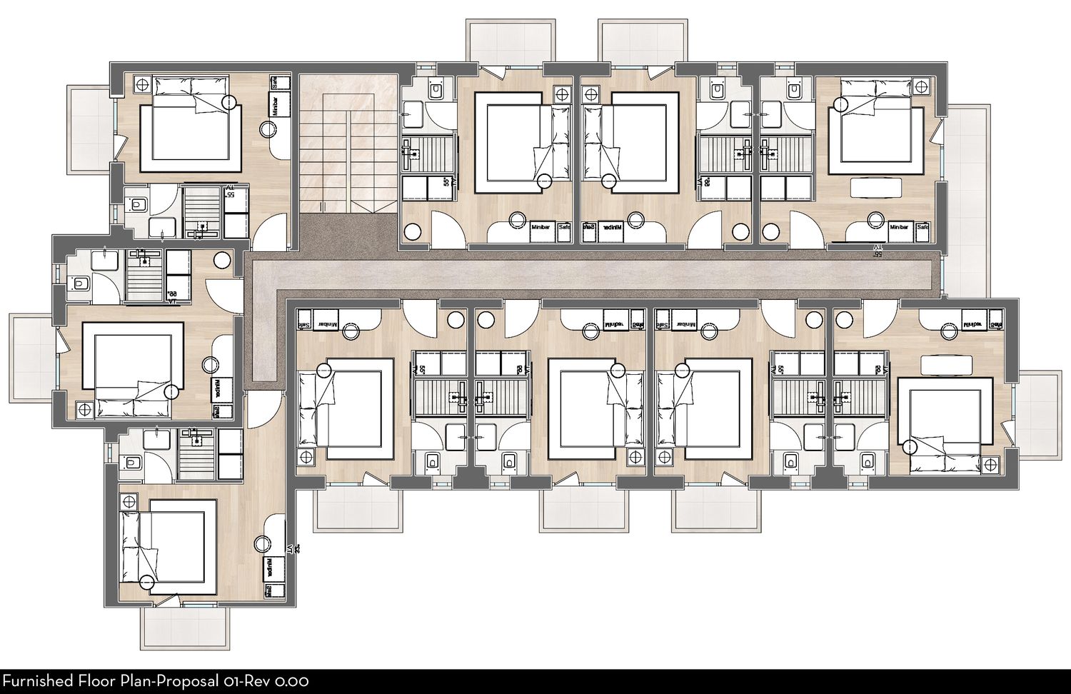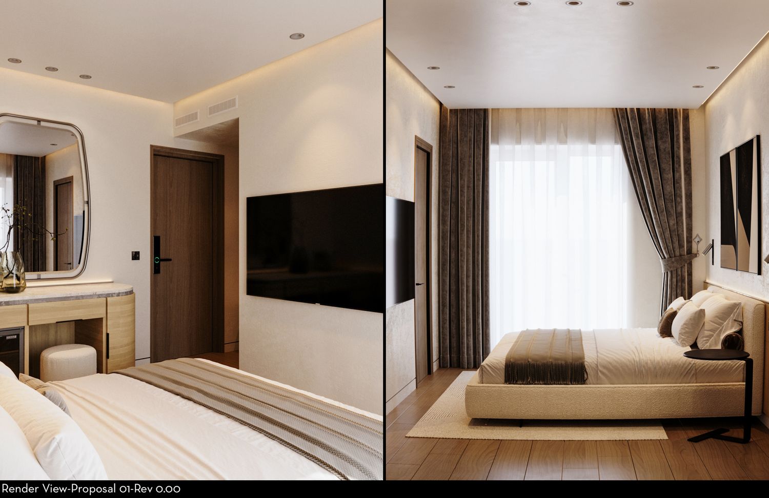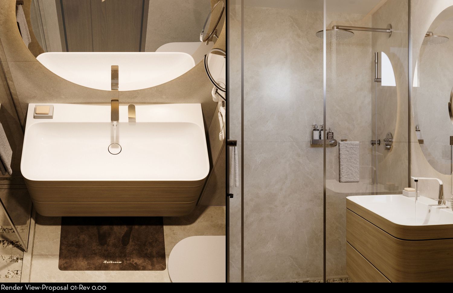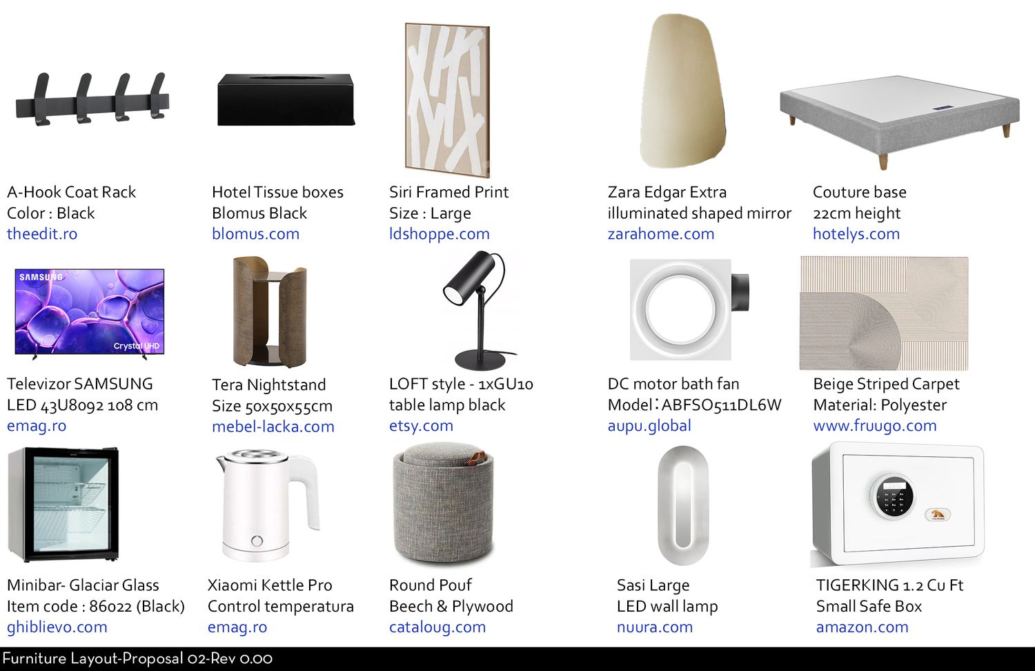 Two comprehensive proposals have been developed for the modernization project, transforming the guest house into a luxurious and modern space, specifically tailored for young travelers and festival enthusiasts. The design maximizes efficiency by allowing for bulk purchases, as most elements are replicable across rooms.
