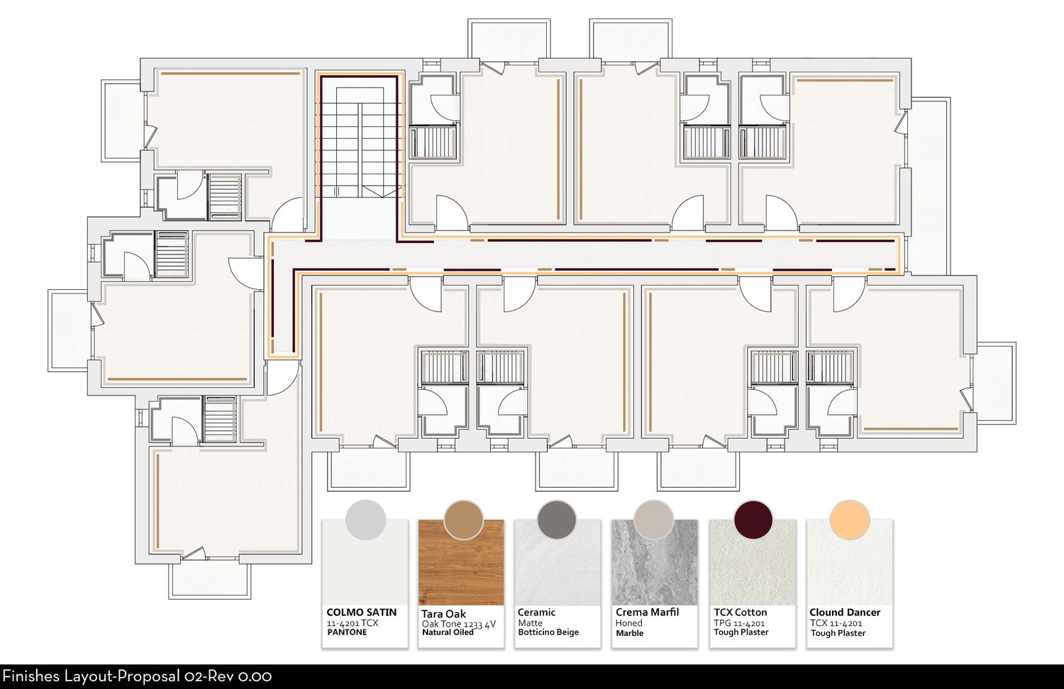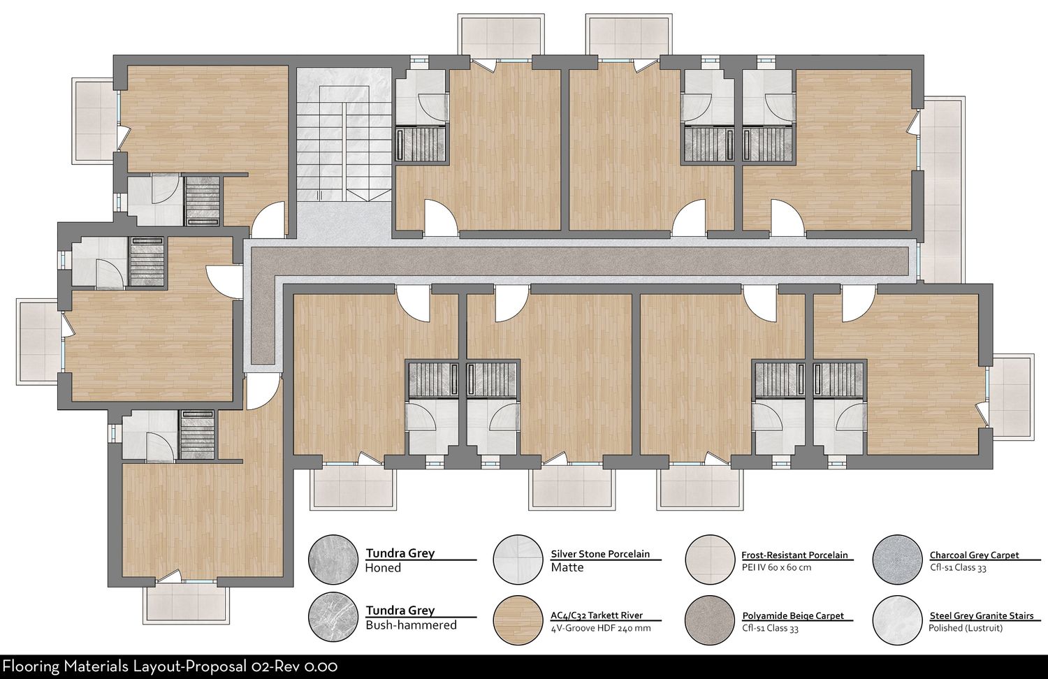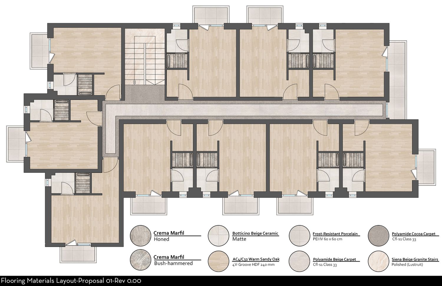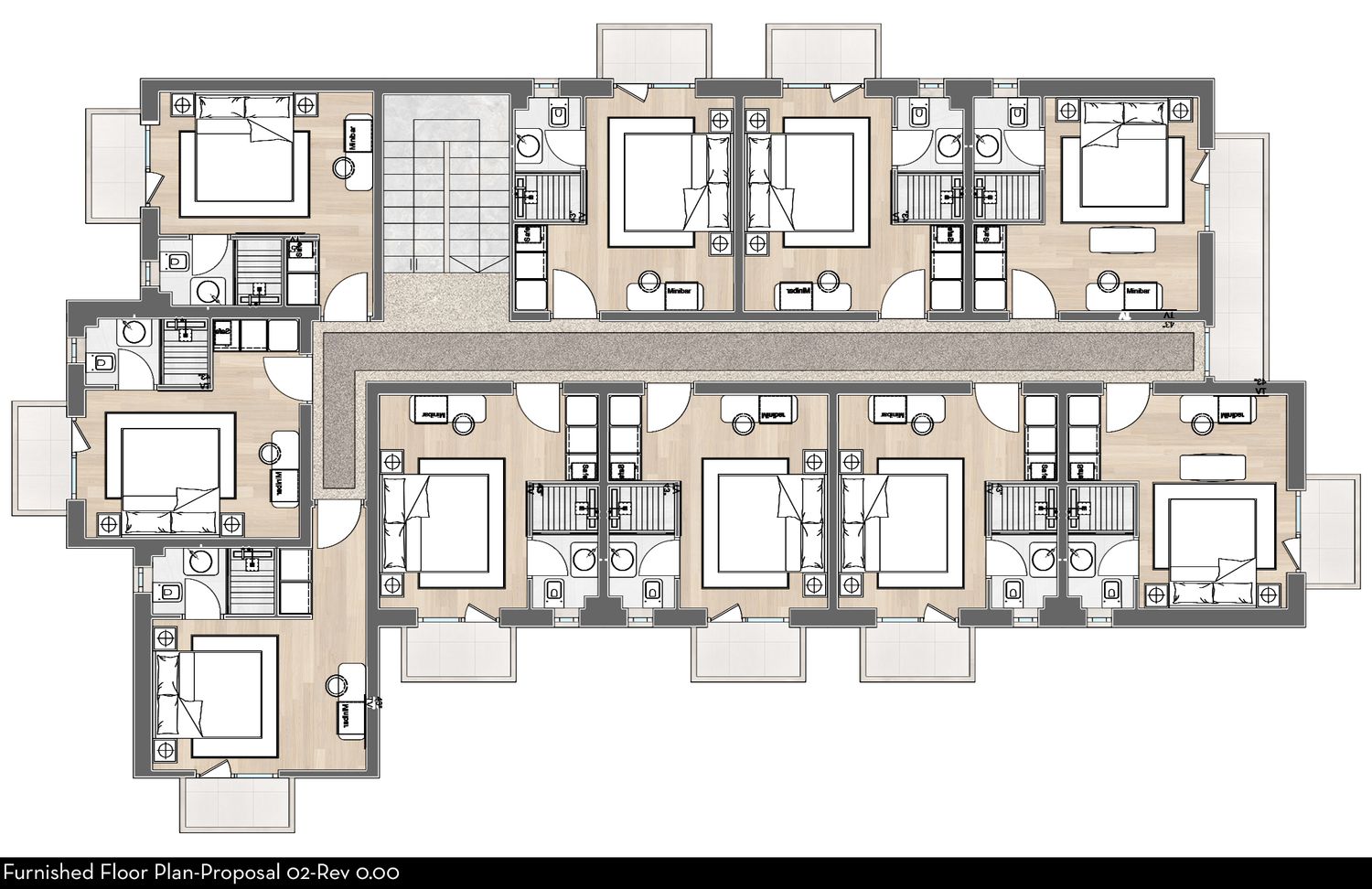 Two comprehensive proposals have been developed for the modernization project, transforming the guest house into a luxurious and modern space, specifically tailored for young travelers and festival enthusiasts. The design maximizes efficiency by allowing for bulk purchases, as most elements are replicable across rooms.