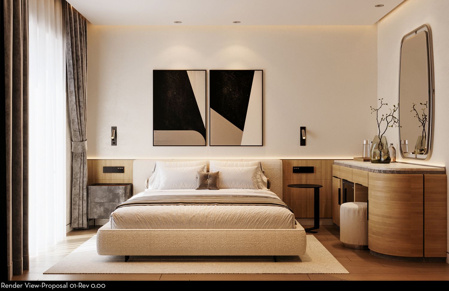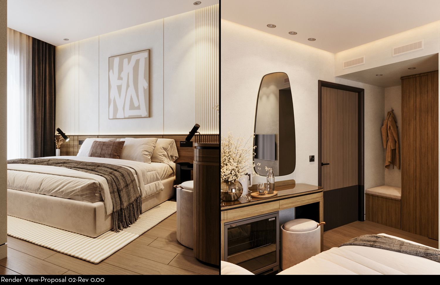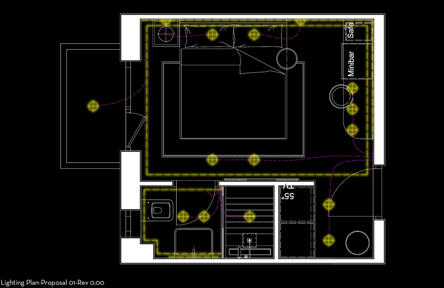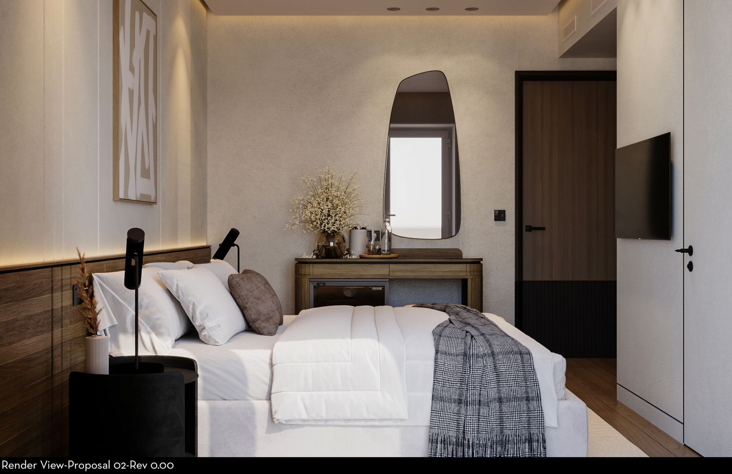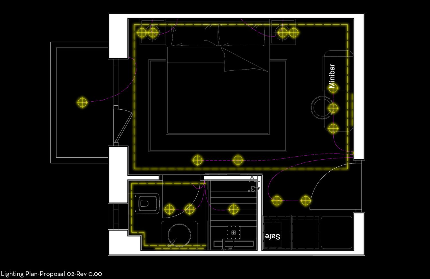 Custom furniture design and a sophisticated lighting plan, utilizing the three-layer method, are incorporated to ensure a balance between excitement and tranquility, creating an Instagrammable and memorable stay.