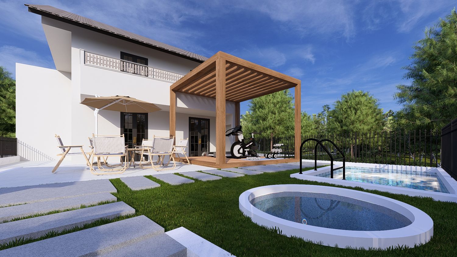 Ogni elemento è stato studiato per creare un giardino vivibile, elegante e sorprendentemente funzionale nonostante le dimensioni contenute.