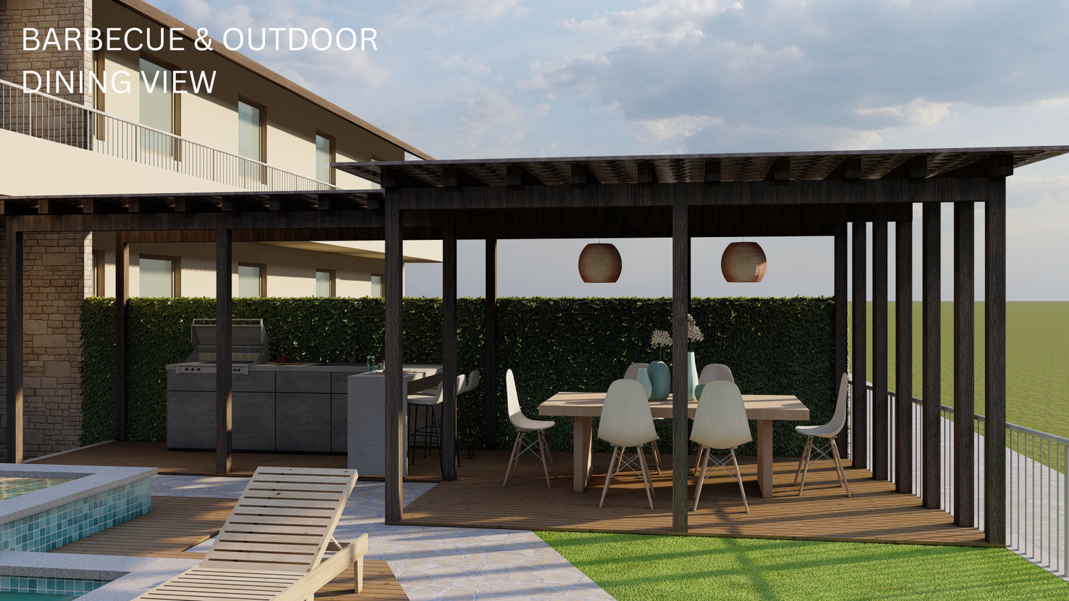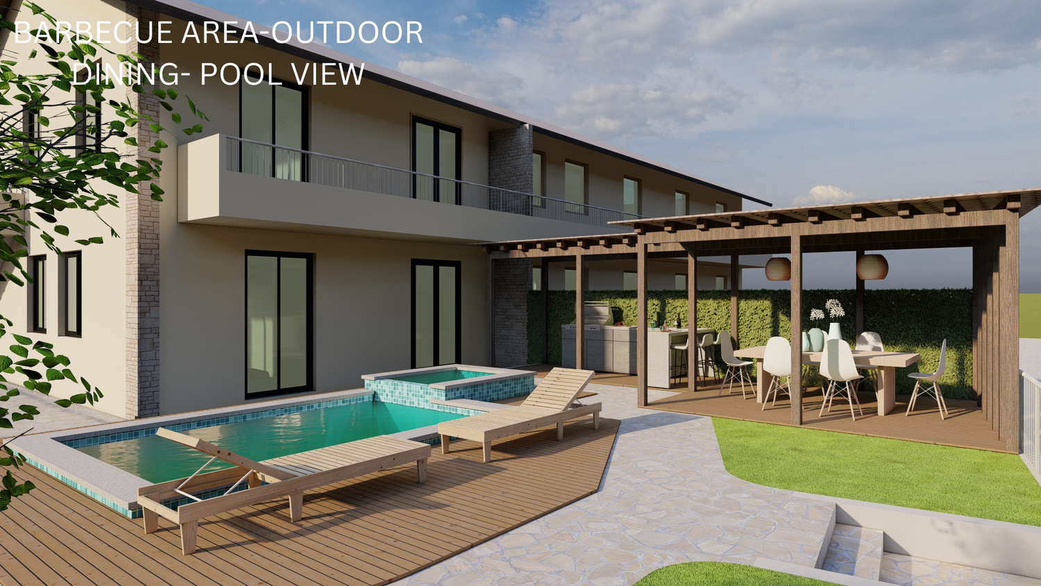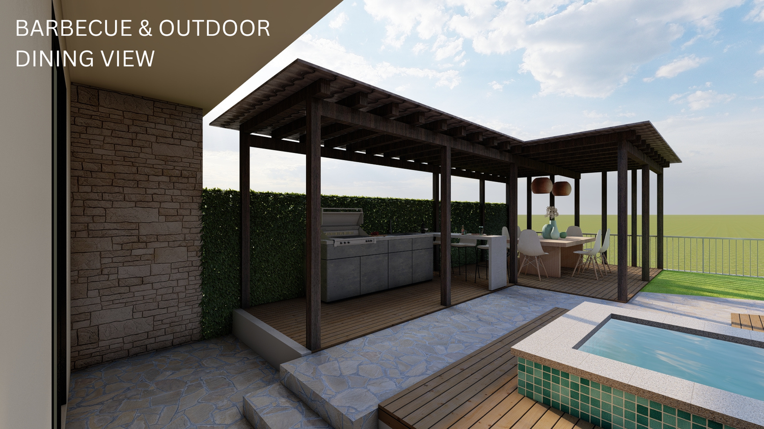 The renovation project has been done as per the client's design brief. Warm tones dominate the interior with shades of blue as accent colours. The rear garden has been designed to offer comfort and a sense of leisure.