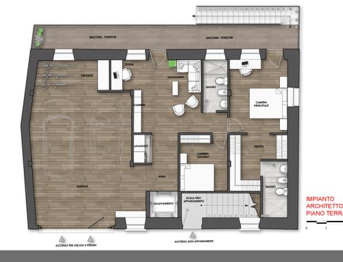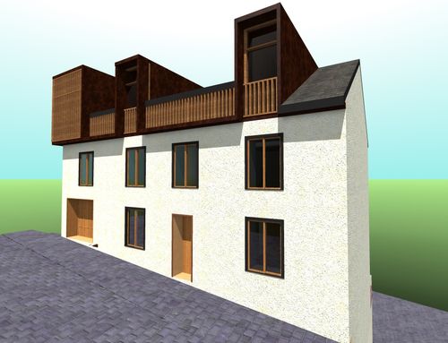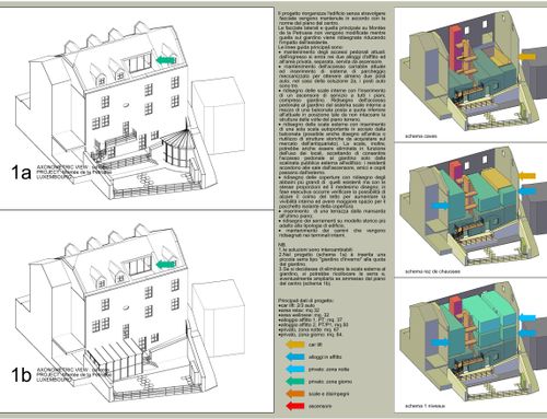 We are a busy and messy couple, who love bright and rational spaces, and to share the taste of good old things with loved ones whenever possible. We wish to upgrade a 1863 rock and wood building to the modern living standards. We will maintain part of the exterior "skin" and of the characteristic semi-basement, but attempt every method to obtain larger windows, dormers/Velux, a terrace on the top floor, some balconies on the lower floors, and a veranda in the basement. The artistic and monumental protection commission of the city requires to maintain as many features as possible of the East, West and South facades, but could leave room for projects that enhance the heritage, managing to modernize the area. We would like to enjoy the view and intimacy of the attic during the day, and use the first floor to rest. The garage should accommodate at least two or three cars, bicycles and motorcycles, while the basement should be for our exclusive use for sharing time with friends and family. The rest of the space should be dedicated to two small apartments for rent. An elevator should connect the top floor with the basement and garden. The master bedroom should have access to a large walk-in closet and a large private bathroom; we would like at least a second bedroom, and possibly a small office that can be used as an additional bedroom. We love to cook and eat good food with friends, and we don't have much time to turn on the TV; we prefer to light the fireplace and spend our precious time with our loved ones. Below you will find detailed documents regarding the requirements set by the city's artistic and monumental protection commission.