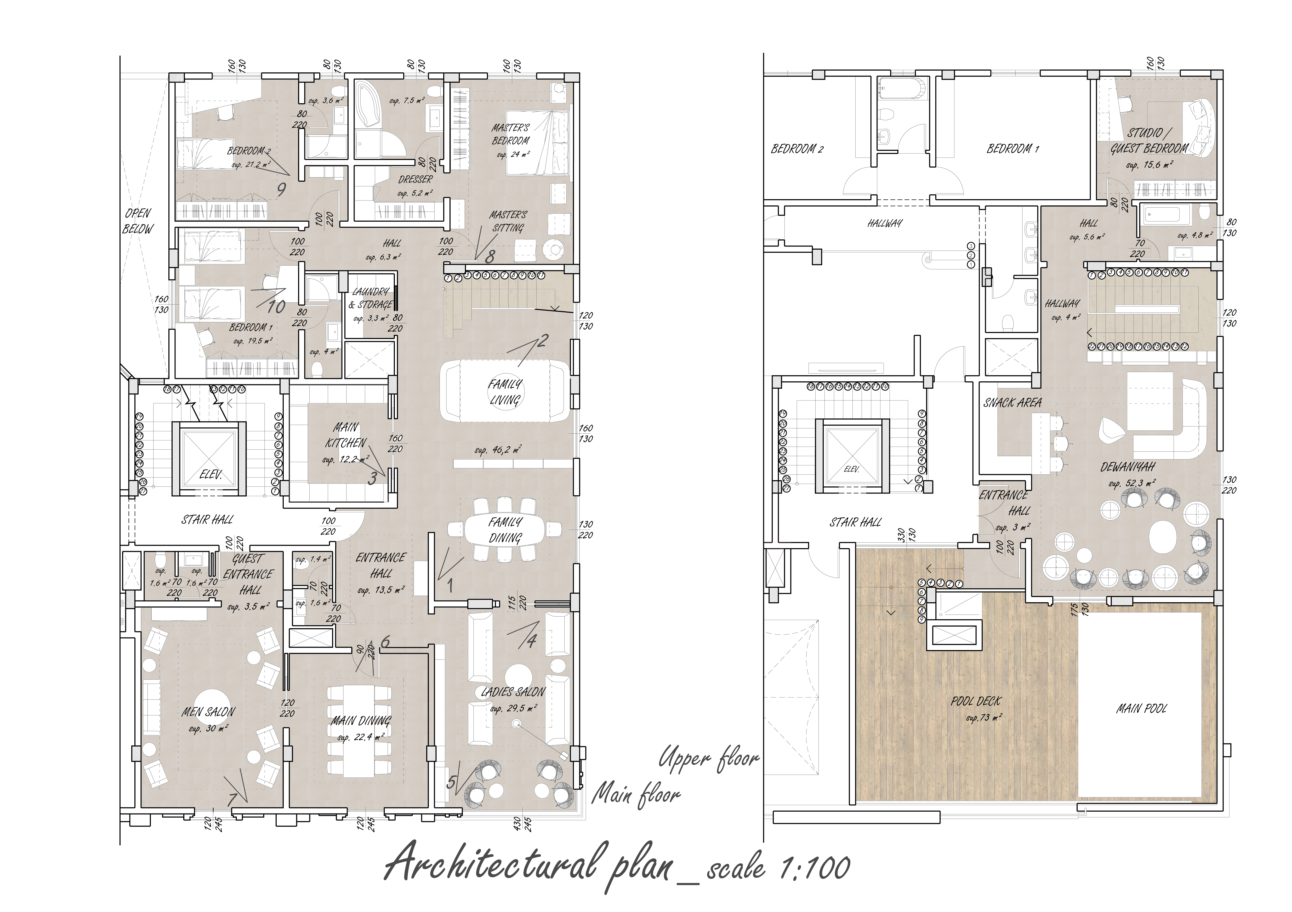 - In the Roof Deck part which is the second level of the apartment, what is called DEWANIYAH: the reference photo, where we have a stone walls and wood ceiling, can be a great option but not a must