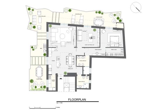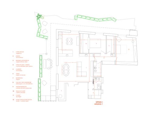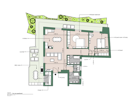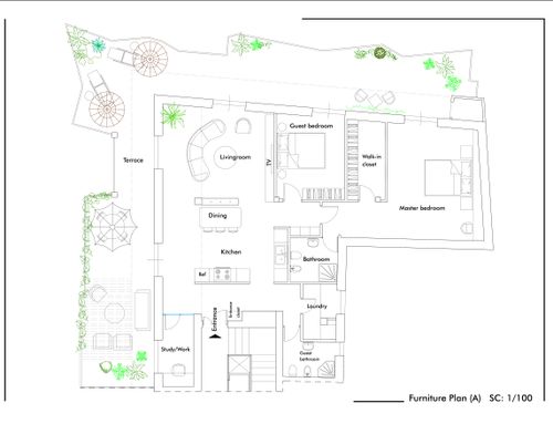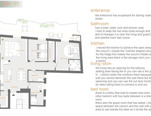 Salve a tutti ..ho un appartamento di circa 100mq si tratta di un attico con una buona terrazza., la mia idea è di spostare la cucina sul lato sinistro del soggiorno ,mi piacerebbe avere due bagni uno dei quali dove è presente L attuale cucina.inoltre c è da considerare uno spazio dedicato ripostiglio/lavanderia .per quanto riguarda la zona notte attualmente prevede due camere da letto matrimoniali ..di cui quella infondo mi piacerebbe studio /camere ospiti. In quella zona se fosse possibile ricavare una zona guardaroba .avendo a disposizione una terrazza panoramica mi piacerebbe renderla vivibile anche nei periodi estivi . Mi piacerebbe una casa elegante . Moderna con colori caldi