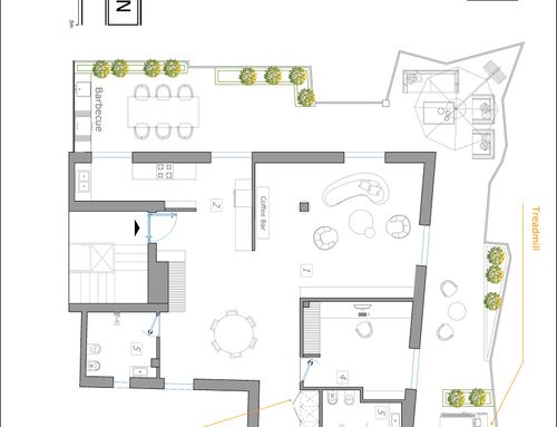 Hola a todos.. tengo un piso de unos 100m2 es un ático con una buena terraza, mi idea es mover la cocina al lado izquierdo del salón, me gustaría tener dos baños uno de los cuales donde está la cocina actual Además, hay que tener en cuenta un trastero/lavadero dedicado. En cuanto a la zona de noche, actualmente tiene dos dormitorios dobles, uno de los cuales, al final, me gustaría como estudio/habitación de invitados. Si fuera posible crear una zona de guardarropas en esa zona, disponiendo de una terraza panorámica, me gustaría hacerla habitable incluso en verano. Me gustaría una casa elegante. Moderno con colores cálidos