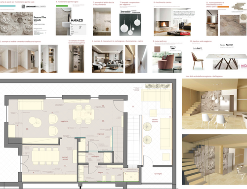 Nel salone vorrei abbattere il muro che nasconde le scale , modificando le scale che portano al piano superiore sul lato sinistro della porta d’ingresso (dove oggi si trova la consolle con specchio a parete). Vorrei inoltre rendere meno rustico il camino nascondendo la parte superiore del camino ( considerando che il camino verrà modificato in stufa a pallet) come se la parete fosse diritta….L’idea è rendere il salone meno dispersivo cercando di valorizzare al massimo l’ambiente, anche quella parete che prima era un accesso al vano cucina (successivamente chiuso).Considero anche l’ipotesi di eventuali parati, contro soffitte o altro.