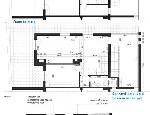 making it start from the first floor so that you can access from the upper floor, because the staircase hinders the creation of a cover that allows shelter from the rain. I would like to create on the entrance terrace a space to be used as an outdoor lounge, covering the walls of the building with bricks.