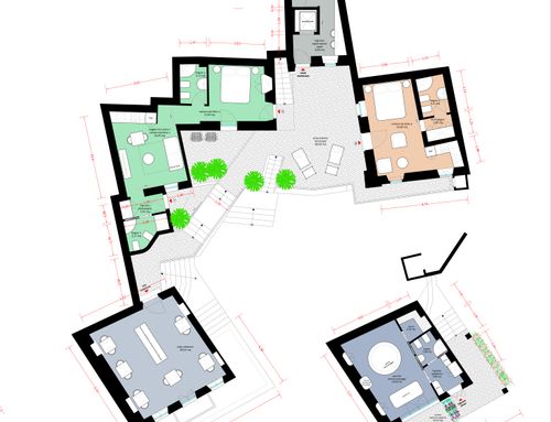 Vorrei realizzare al piano superiore l'appartamento in cui vivere, ai piani inferiori n.3 alloggi da n.03 stanze cadauno e n.02 bagni per essere utilizzati come b&b 12 posti letto. Stile moderno lasciando inalterata la sagoma esterna del fabbricato. Nella casetta vorrei realizzare una piccola sala colazione al piano primo e spa al piano terra.