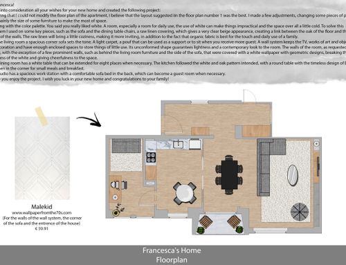 In the entrance we would like some niches and a bookcase. There will also be a wardrobe for the clothes of the guests who come to visit us. The niche is already prepared in the project. I enclose the map of the current state and some images of furniture that I like. I would not like to change the floor plan but obviously you can decide how to dispose the furinishing like you want in the project.