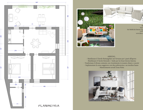 la parte su cui ci vorremmo concentrare è’ il rivestimento e la pavimentazione,cercando di utilizzare il mobilio esistente e ridisporlo,riqualificare la veranda esterna con idee d’arredo e varie modifiche.