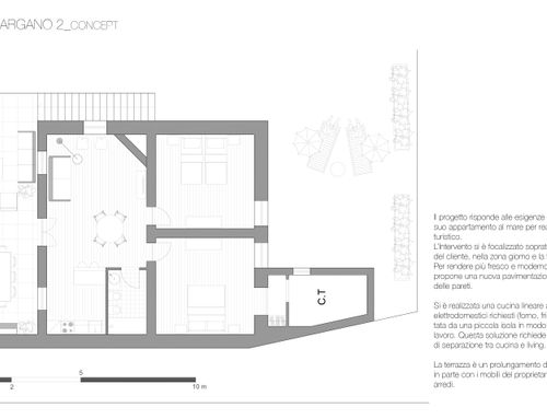 This is the apartment located on the 1st floor of my villa (see contest My house in Gargano) the part on which we would like to focus is the cladding and the flooring, trying to use the existing furniture and redecorate it,redevelop the outdoor veranda with furniture ideas and various modifications. Ps: The apartment will be used mainly for short term rentals, so the type of furniture, lighting and layout of the spaces must follow precise guidelines.