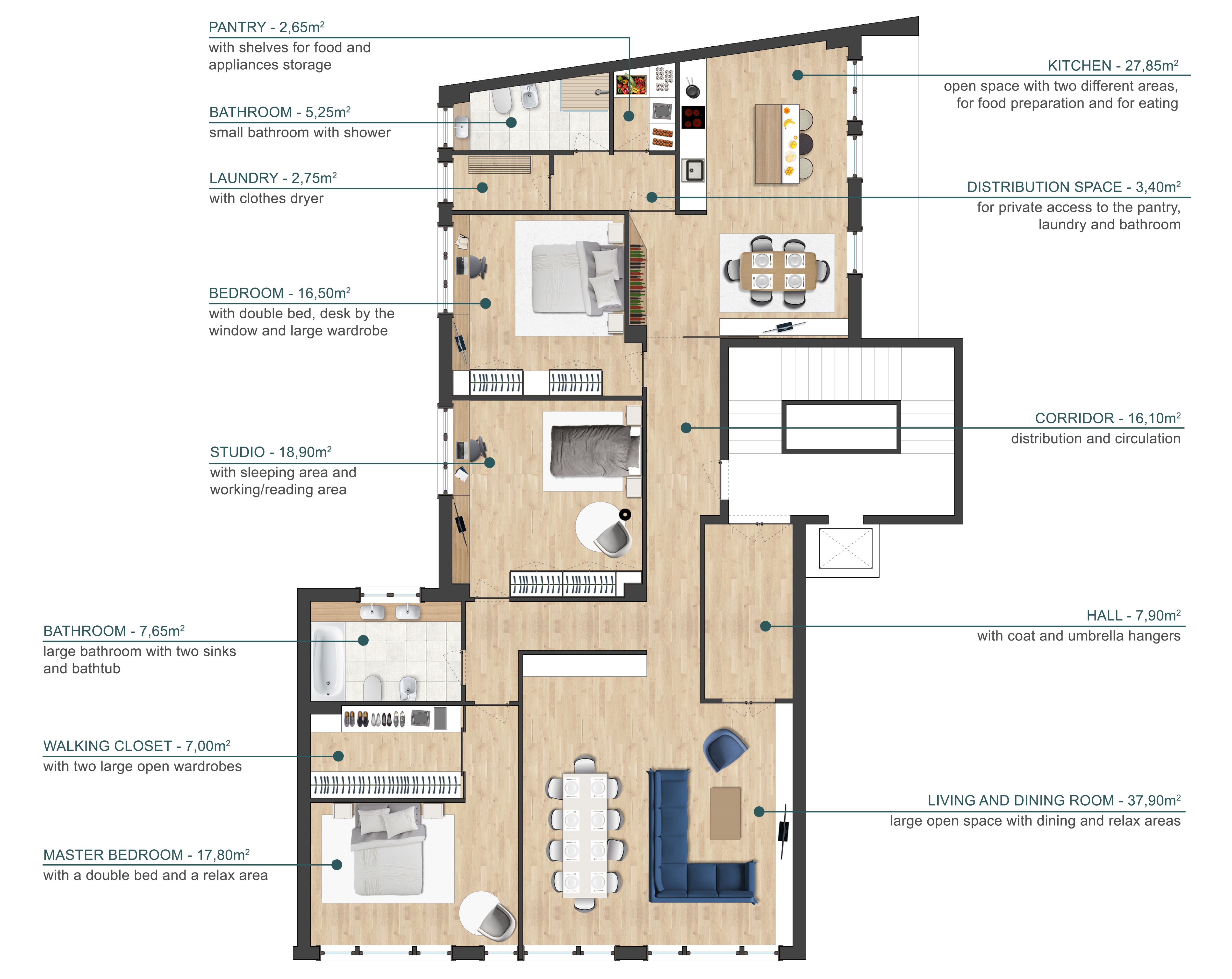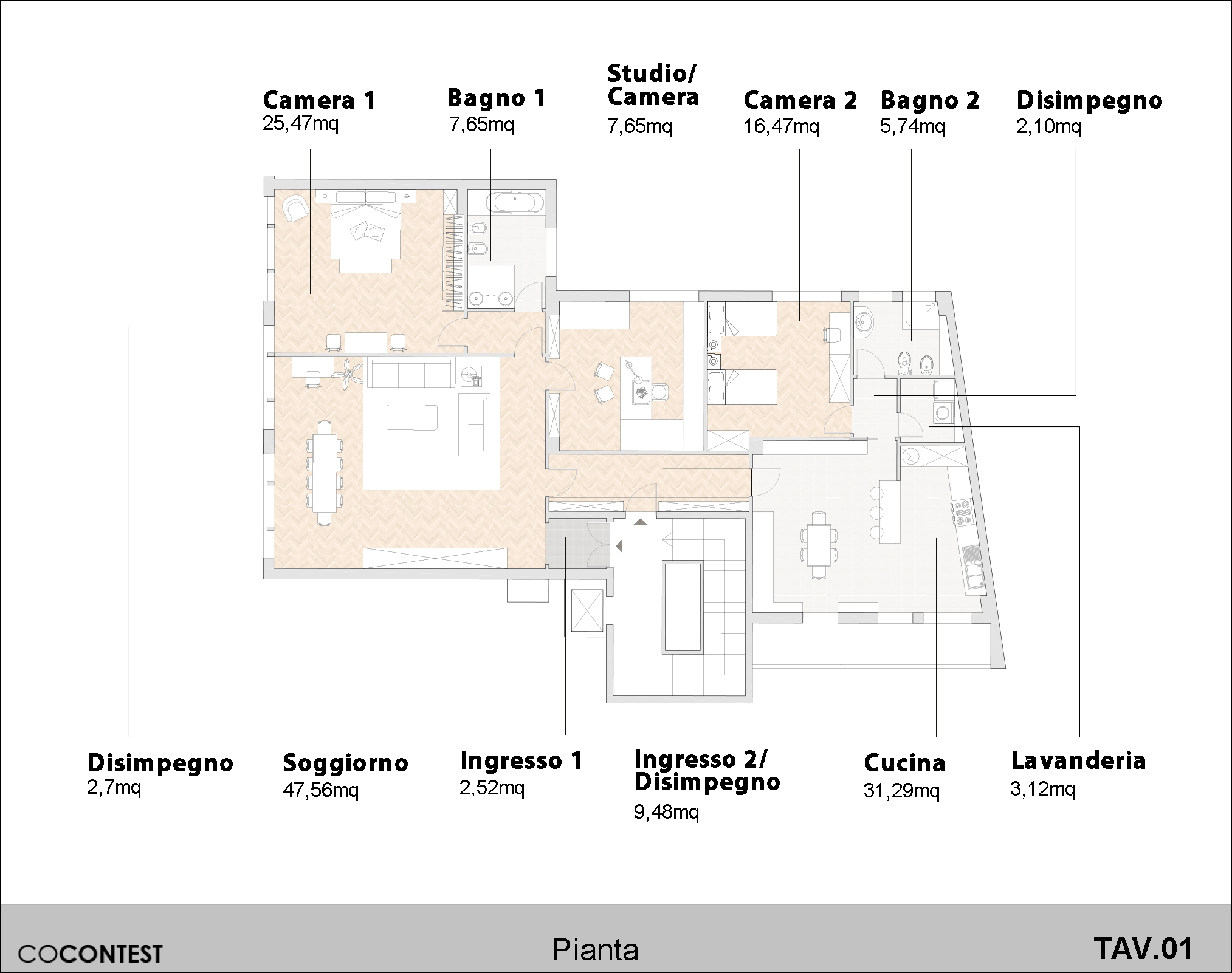 tutti i locali escluso cucina e bagni sono con il parquet di rovere.