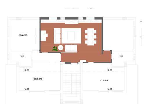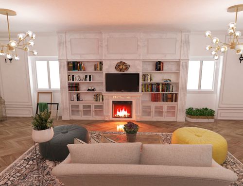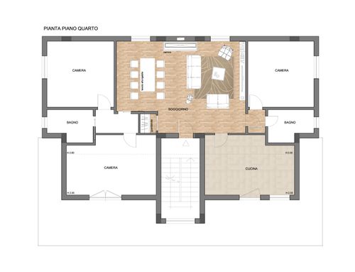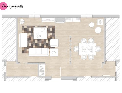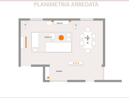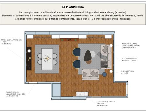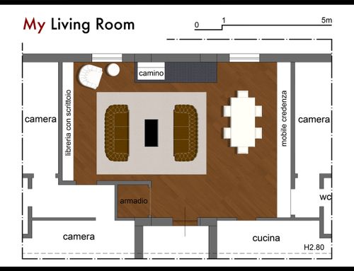 dovrei arredare soggiorno di circa 40 mq con caminetto su parete tra 2 finestre