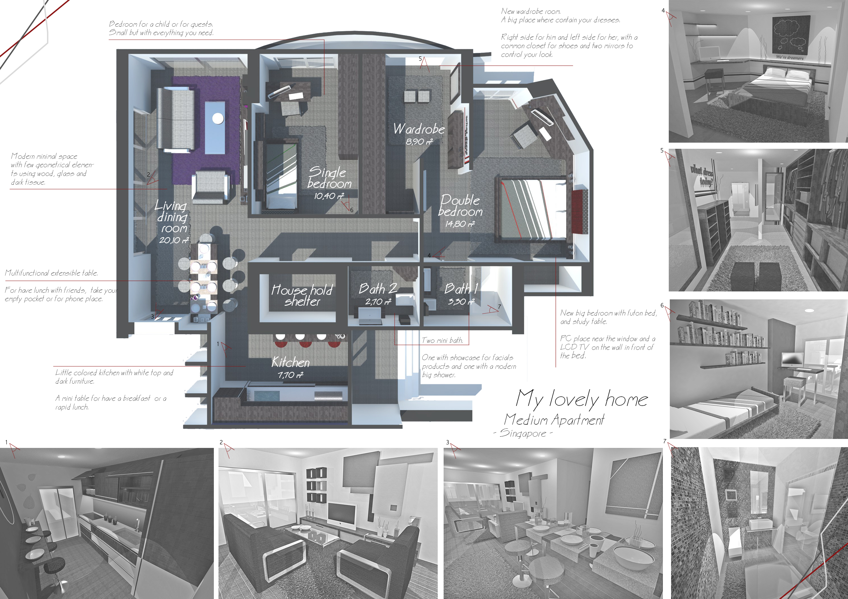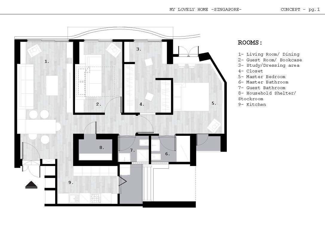2) One room that is beside the bed room-used for walk in wardrobe- one side for woman (white), one side for man (black), but they are at the same side of the room, the opposite end, designer can think of what to construct Eg, http://www.tripadvisor.com.sg/Attraction_Review-g294265-d2338976-Reviews-De_Walk_In_Wardrobe-Singapore.html