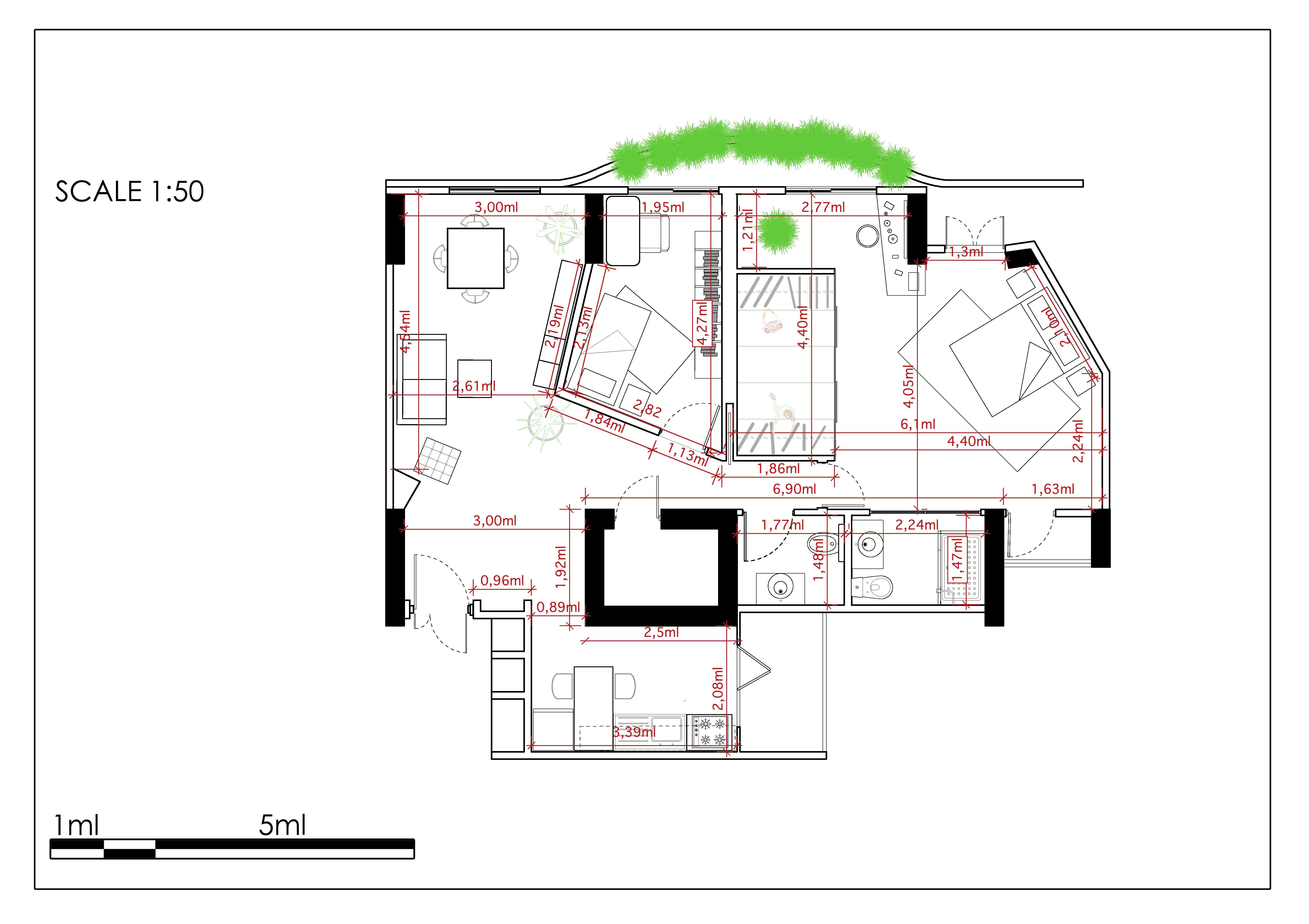 2) Wall across all apartment should be white, or designer can suggest wall paper if needbe