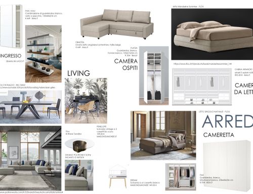 ENG VERSION: New home for me and my family. I would like functional spaces and modern lines while maintaining a sober and essential style. Reference images of the individual rooms are indicated on the moodboard loaded in the floor plans. The budget for interior design and furnishings is 50,000 euros.