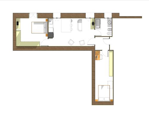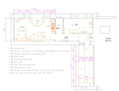Hola a todos, tengo un ático de 50 metros cuadrados. Me gustaría redistribuir el interior para que sea más funcional a mis necesidades. Estoy considerando una redistribución de los espacios interiores teniendo en cuenta que me gustaría alquilarlo lo antes posible. Dado que este es un ático con un valor de 25,000 euros, no me gustaría invertir mucho en las obras, sino tener un ambiente agradable en proporción al presupuesto que tengo para las obras, que es de 5,000 euros. En lugar del armario gris, me gustaría poner un plasma y una pared de ladrillos falsos. El vestidor blanco incluye dos paredes, una de las cuales tendrá una altura de 2.90 m. Me gustaría conservarla para cuando me mude.