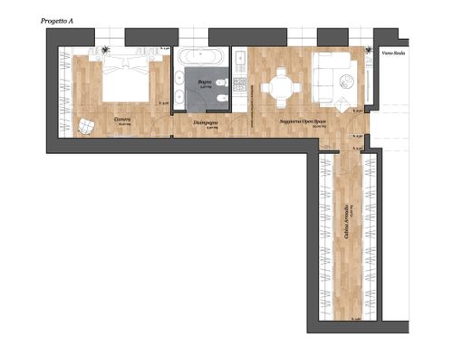 Al posto dell'armadio grigio vorrei mettere un plasma e una parete di finto mattone. La cabina armadio bianca comprende due pareti di cui un angolare come altezza sarà 290..mi piacerebbe farla stare per quando mi trasferisco.
