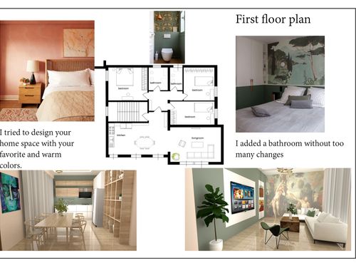 Colori chiari, pavimentazione legno colore rovere, tono caldo, toni del verde o pesca per le pareti. No solo grigio, bianco nero.