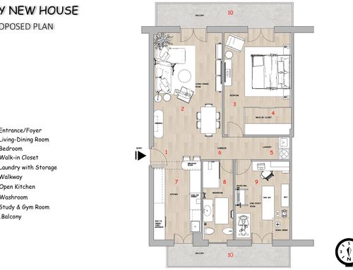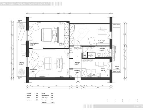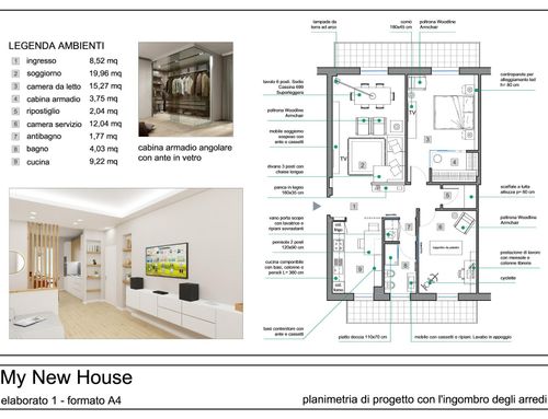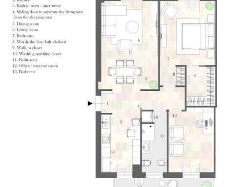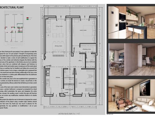 Hi, I bought an apartment of about 80 square meters to be renovated where I would like to optimize the spaces to have a more functional use of all the environments in particular the bathroom, corridor, entrance and kitchen (are some parts / walls to be eliminated?). I like a modern style with light colors, well lit; the flooring will be of light oak wood. There are some valuable pieces of furniture. I wish you good work and express your best ideas and solutions above all surprise me.