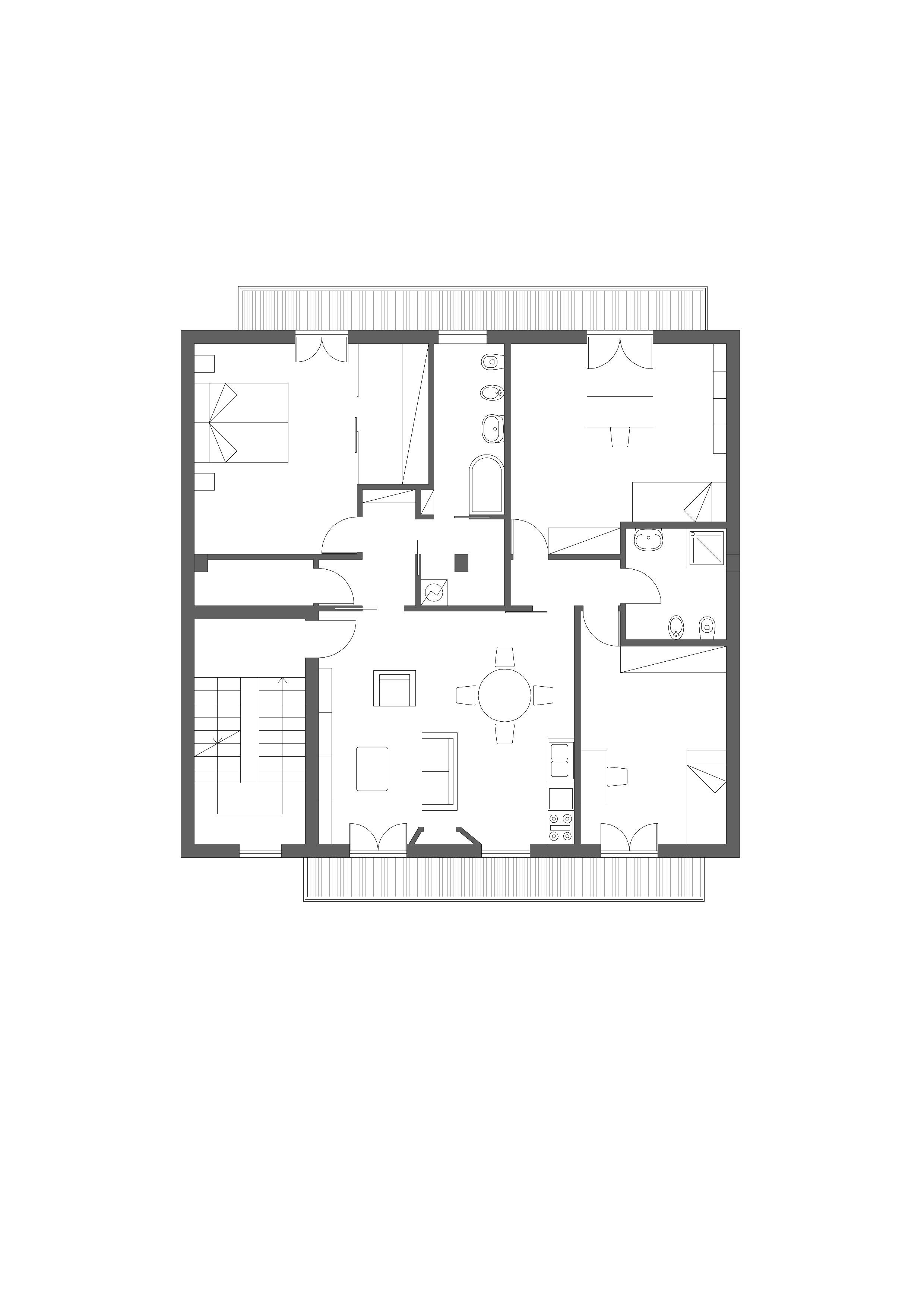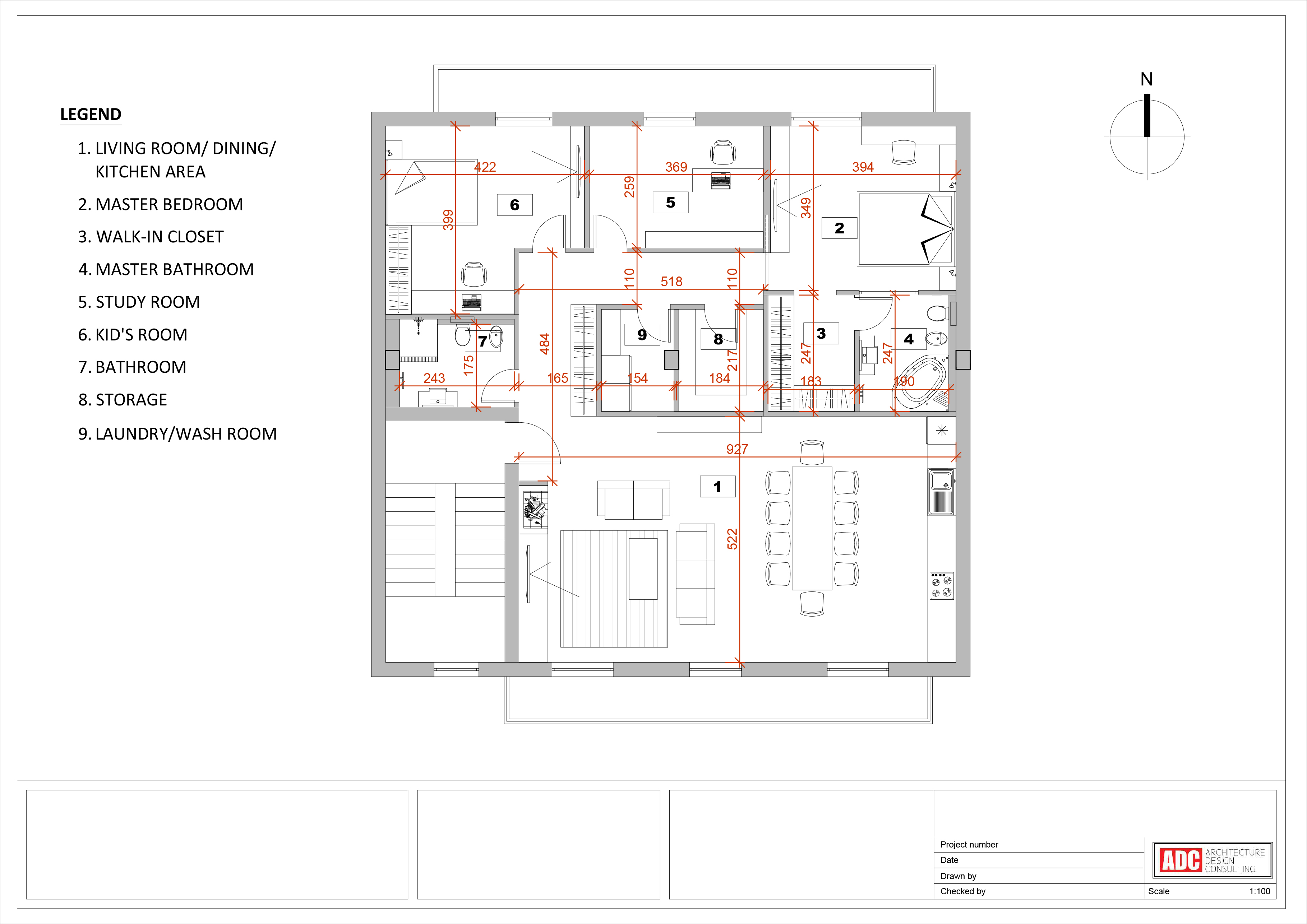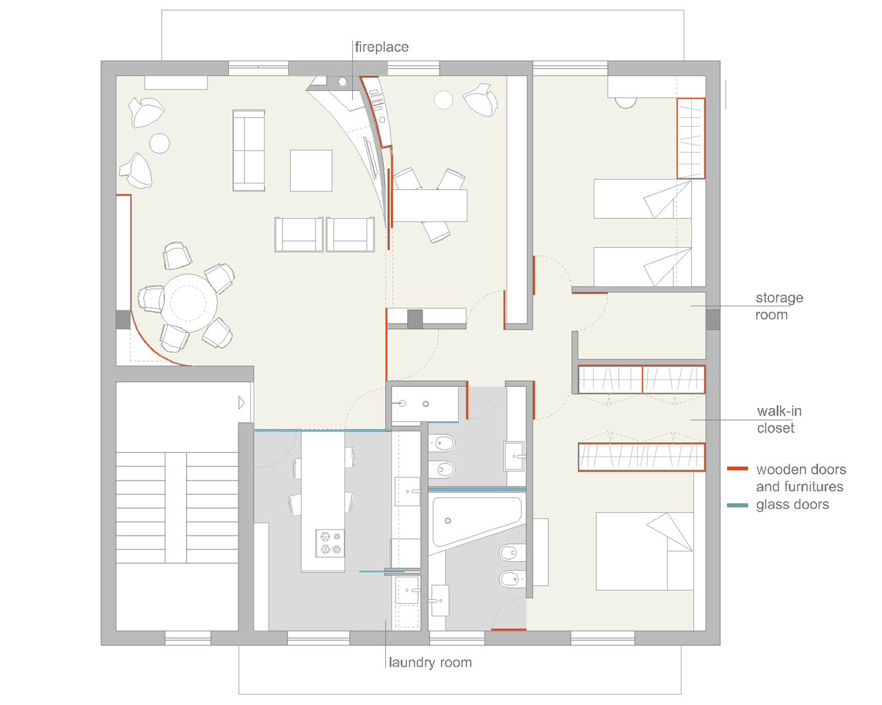 The house is under construction. In this space I would like to get: 1 large bedroom, 2 bedrooms, kitchen, 2 bathrooms, a laundry room, a storage room, living room (preferably at the entrance of the house)