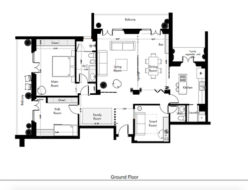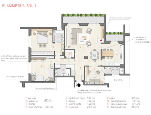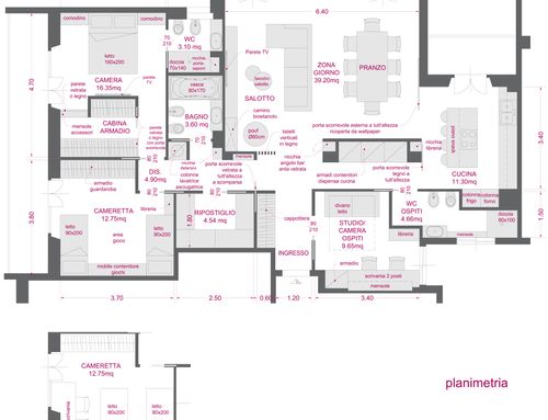- A study / guest room useful for smartworking needs, but which can become a guest room if necessary (perhaps with a simple good sofa bed), in a near future this room could become a child room.