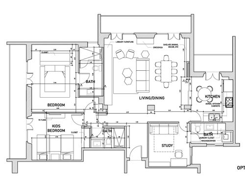Currently the apartment has 2 bathrooms, 2 bedrooms, kitchen, living room, study and a closet.